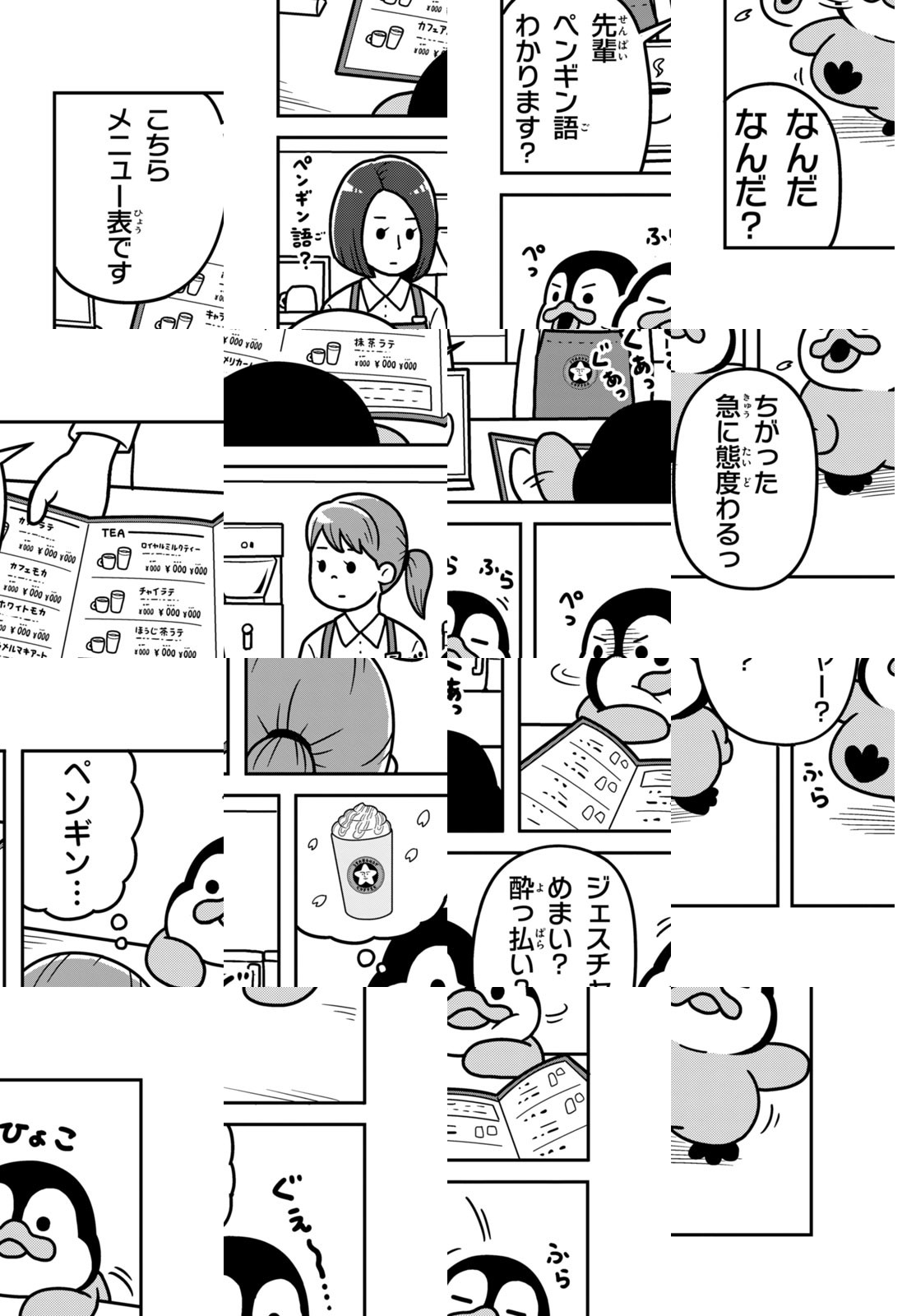 【泣き虫で甘えん坊なコウテイペンギン】【ドジでおバカなアデリーペンギン】【やんちゃでわんぱくなイワトビペンギン】にんげん社会に紛れ込んだ、3匹のペンギンたち。三輪車でフードデリバリーのアルバイトをしたり、カラオケでマイクを互いに譲り合ったり…。とことんマイペースに生きるペンギンたちと、彼らに振り回されるにんげんの、ゆるかわ漫画!!
