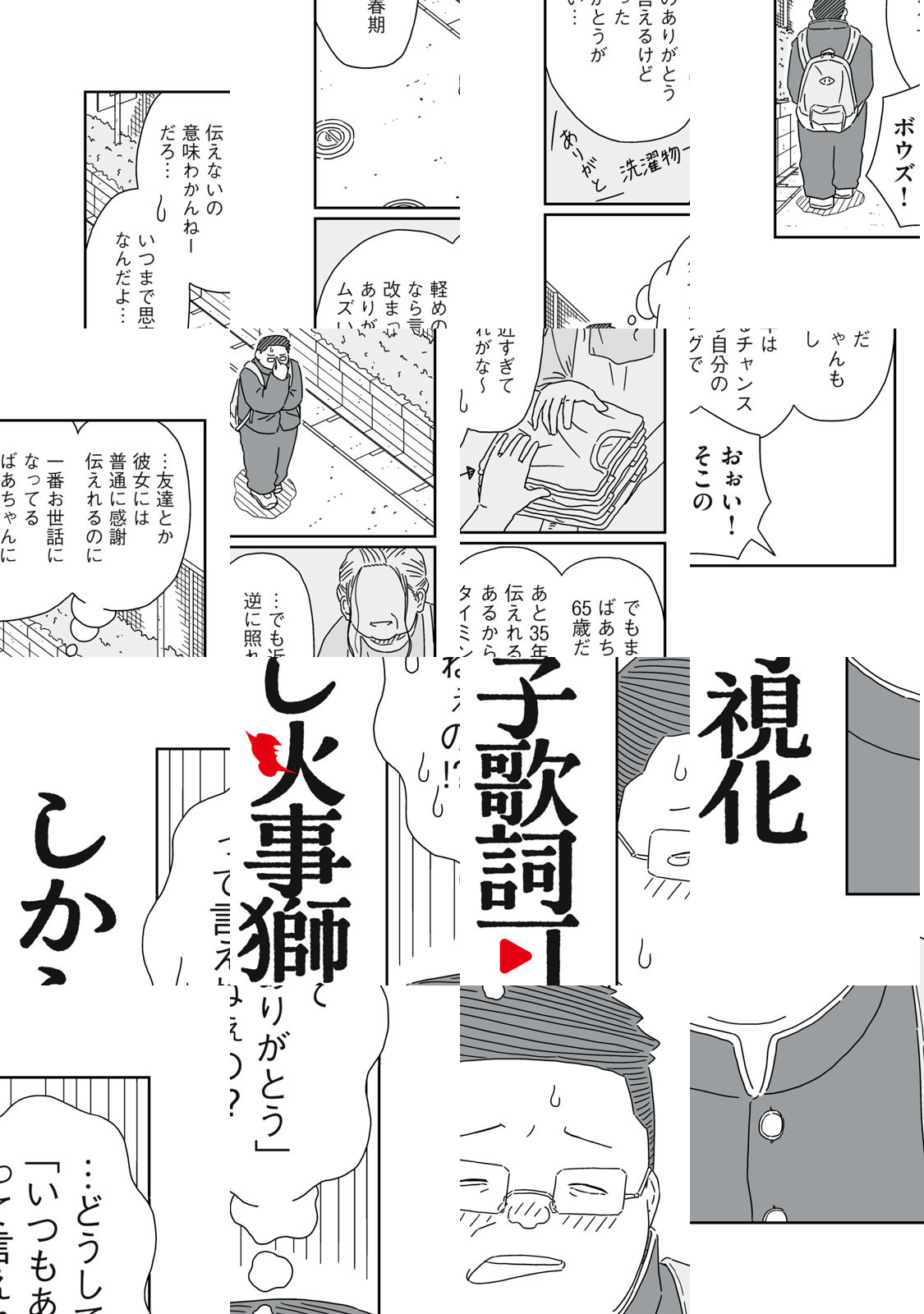 活動停止中の音楽系Vtuberの火事ライオン。モチーフとなった聖地で火事ライオンの歌を聞くと”ソングダイブ”という現象が起こる。火事ライオンの活動再開を願い聖地を巡礼するファンと、火事ライオンを取り巻く、青春オムニバスストーリー。