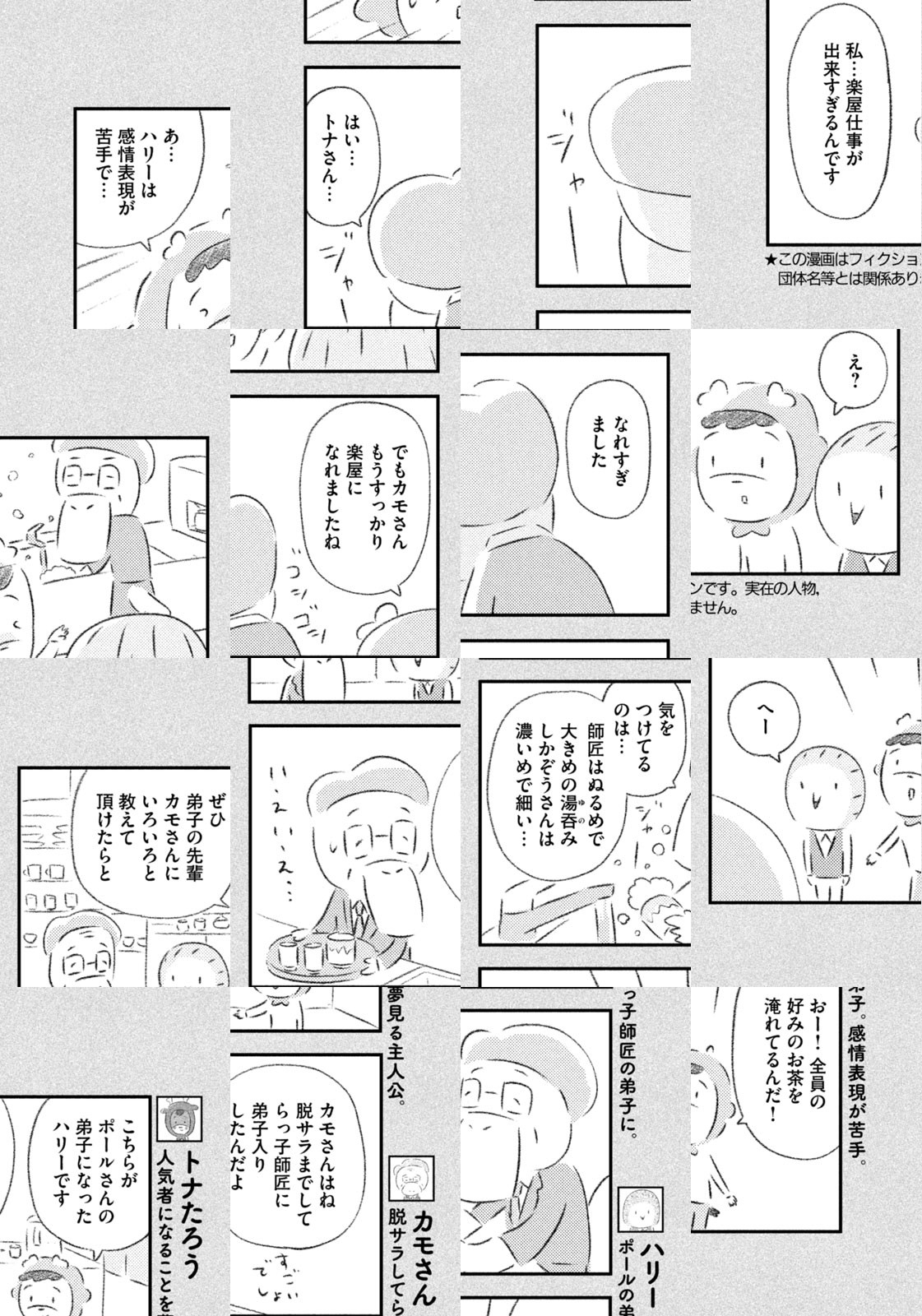 先輩にはいびられ、後輩には舐められ、お客さんには気づかれない主人公・トナカイのトナたろう、ちょっとガサツでデリカシーのないスカンクのポール先輩、元気すぎるお猿のアーコ、大人気のパンダくんなど、どこか見たことあるような動物たちの楽屋での悲喜こもごもなアニマル賛歌。自分の才能や“動物関係”に今日も悩みながら切磋琢磨する動物たちの舞台裏を覗いてみませんか?