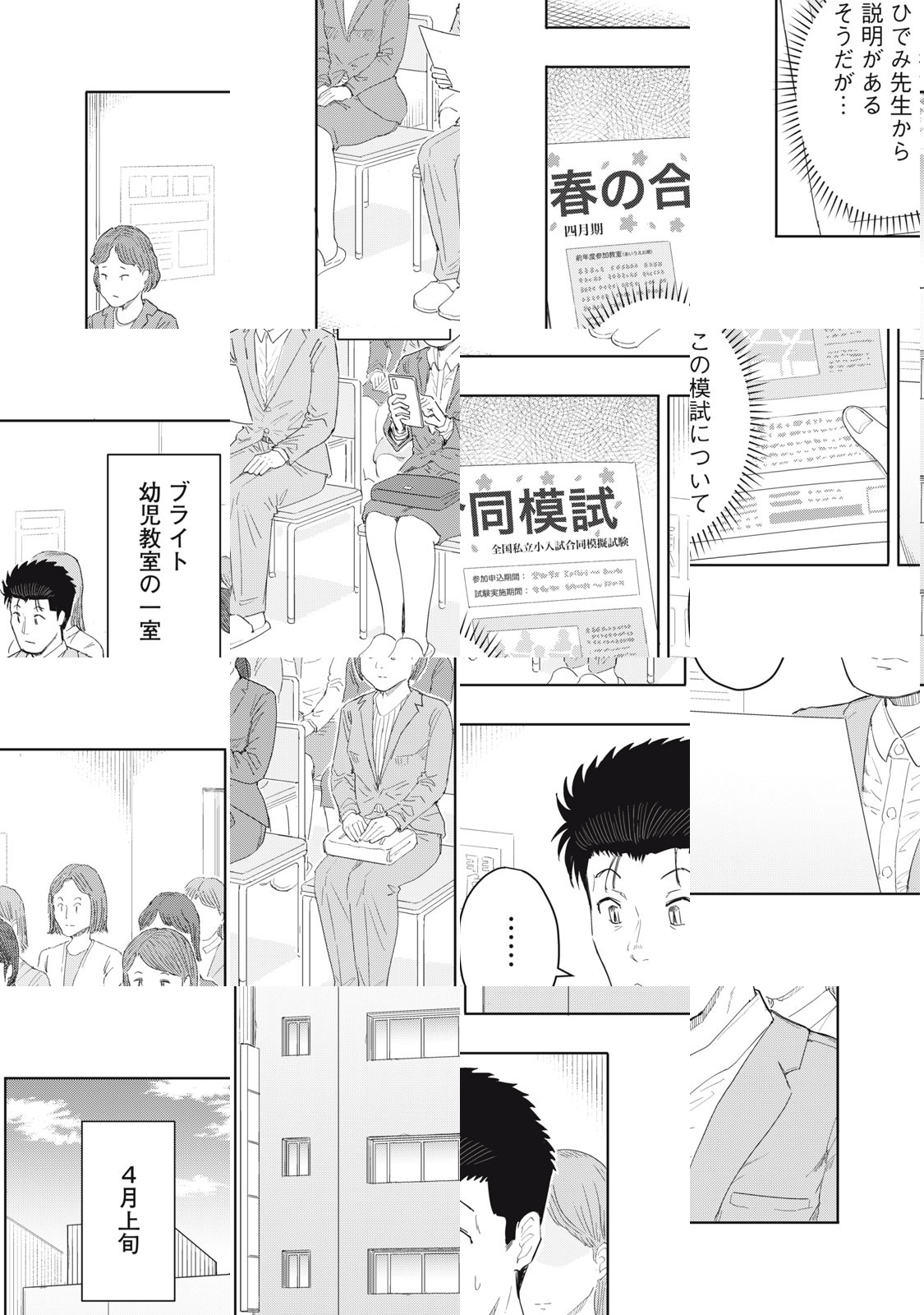 大手出版社・壇講社で週刊誌の編集者として働く小谷宏平は、小学校受験、いわゆる「お受験」の記事を担当することになる。無名大学出の宏平は就職活動で苦戦したが、アルバイトとして壇講社で働き、長年雑用をこなした努力が実って契約社員として編集者になった経歴がある。そのためか、周りで働く高学歴社員の学歴自慢には辟易としていて、お受験にも否定的。だがある日、そんな宏平の育児観を変える大事件が勃発して…!