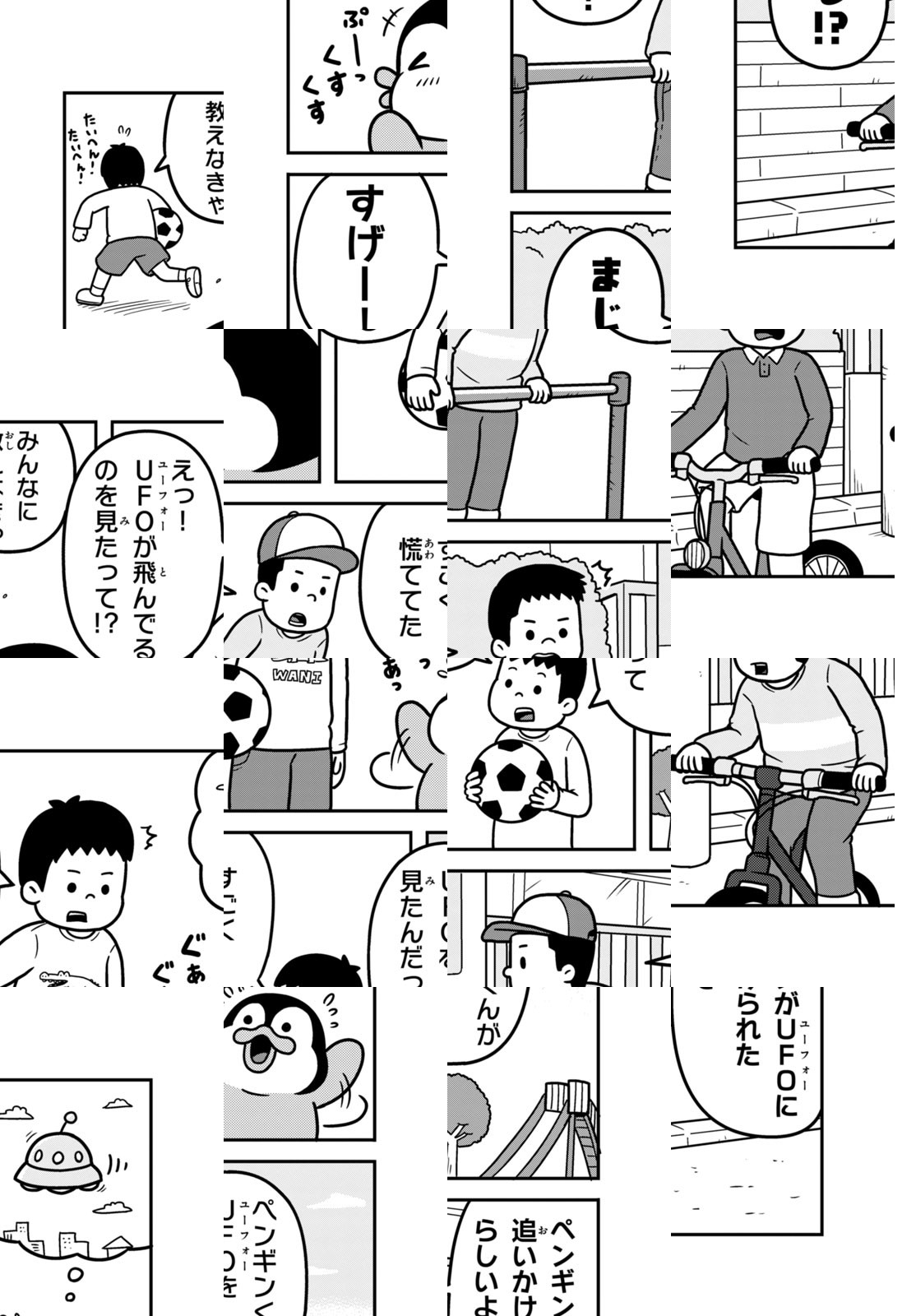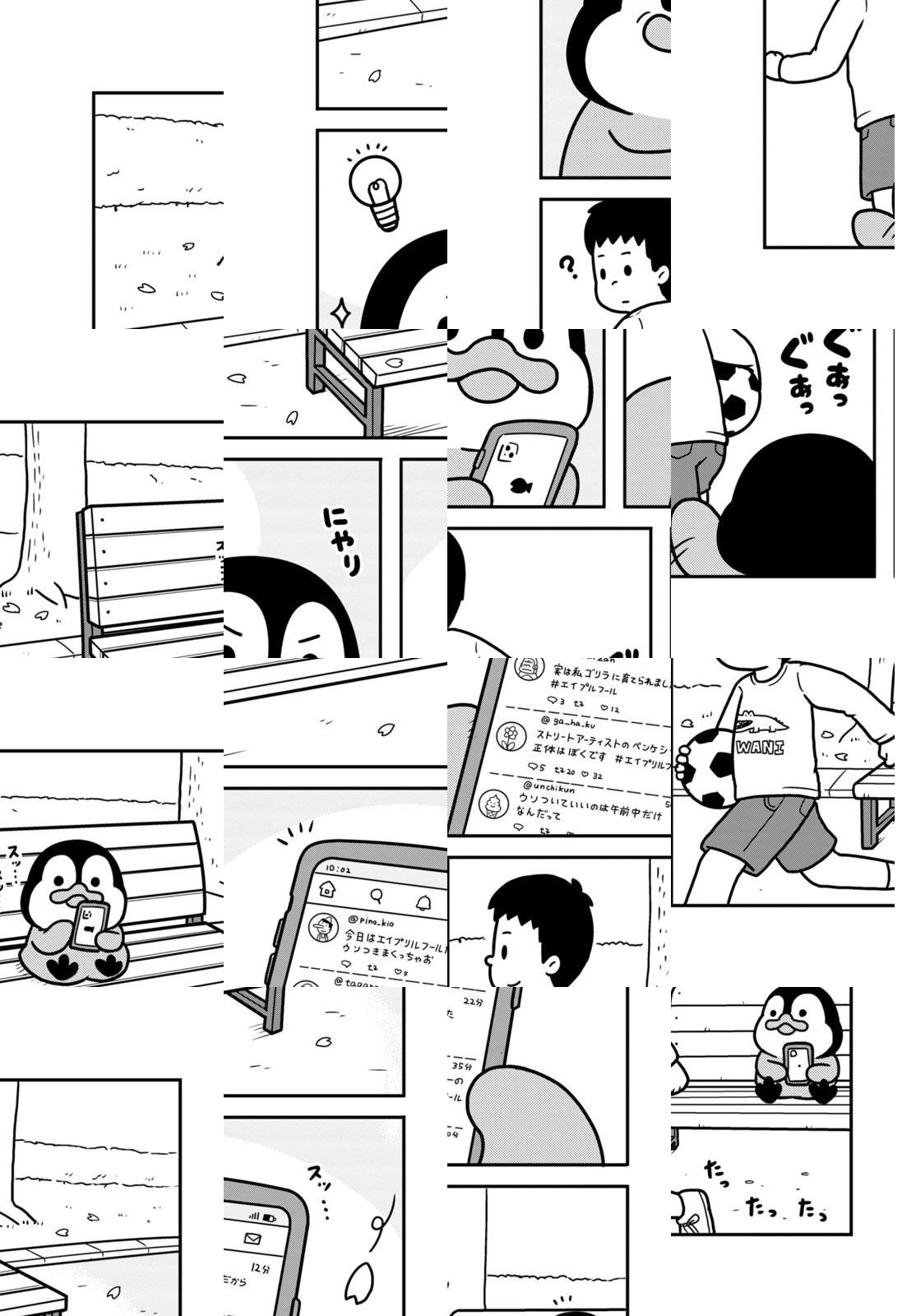 【泣き虫で甘えん坊なコウテイペンギン】【ドジでおバカなアデリーペンギン】【やんちゃでわんぱくなイワトビペンギン】にんげん社会に紛れ込んだ、3匹のペンギンたち。三輪車でフードデリバリーのアルバイトをしたり、カラオケでマイクを互いに譲り合ったり…。とことんマイペースに生きるペンギンたちと、彼らに振り回されるにんげんの、ゆるかわ漫画!!