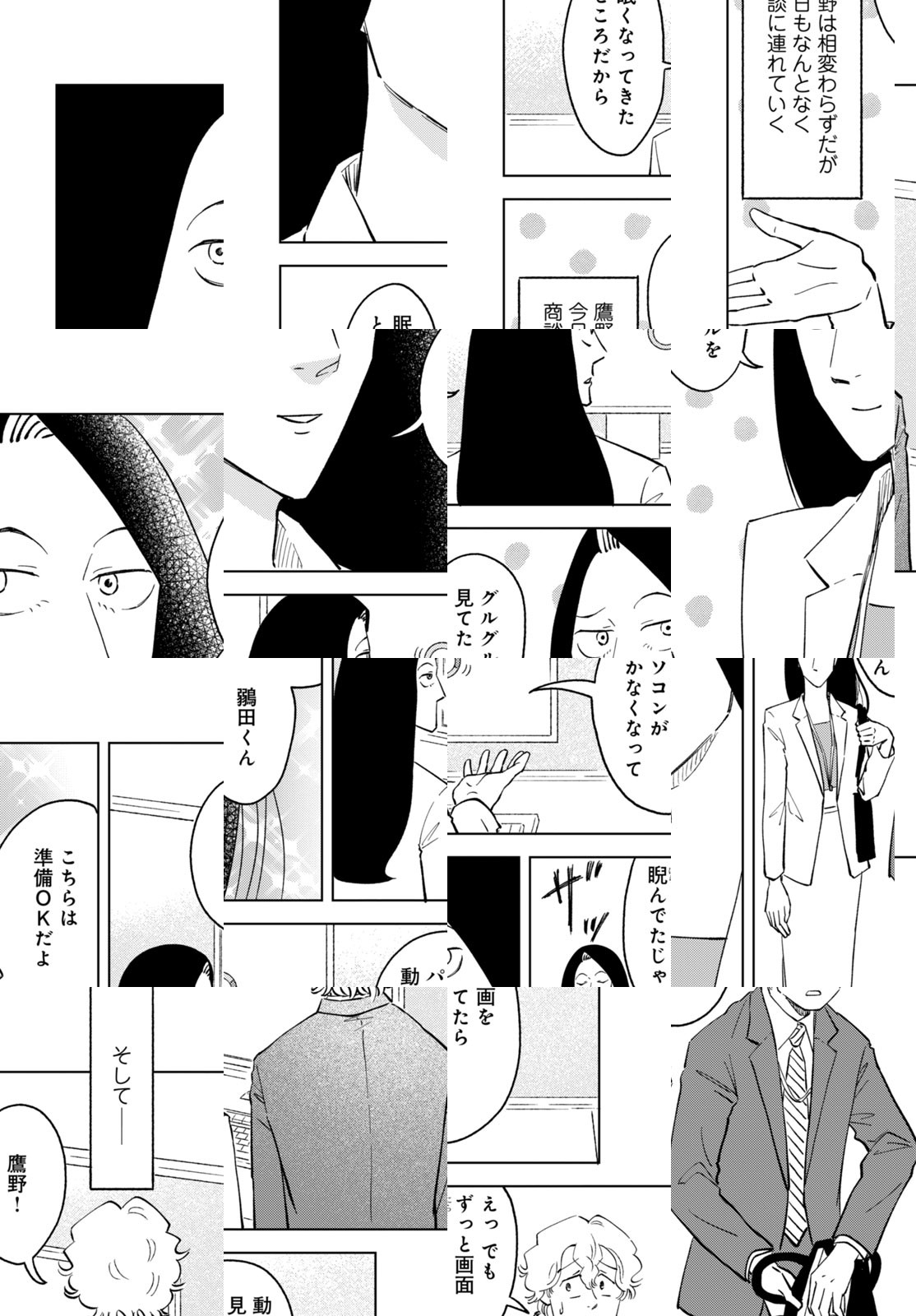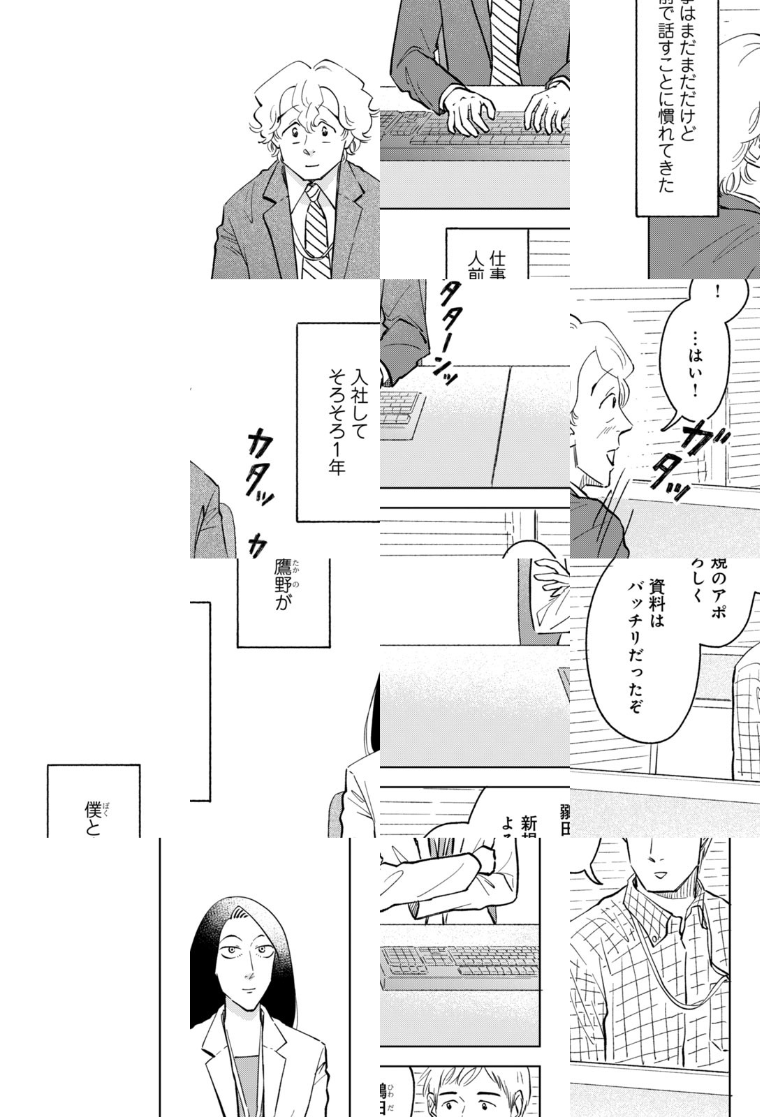 鶸田は就職活動中、ある会社の面接で見るからにデキる女性(同じく就活生)・鷹野に出会う。スマートな身のこなし、落ち着いた声、着慣れたスーツ、自信に満ちあふれているのに謙虚。縁あって一緒にその会社に入社したふたり。ただ、1年半後、彼女は社内ニートになっていた。