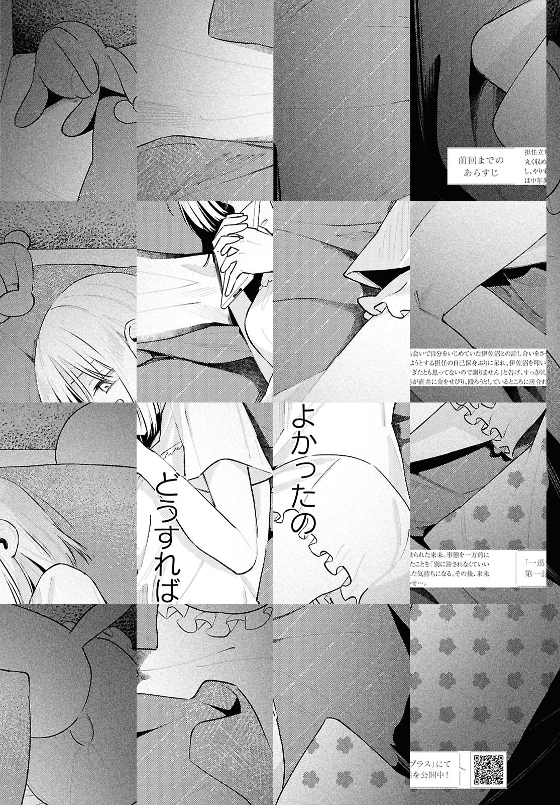 吉沢来未は、成績優秀で人当たりもいい生徒会長…というのは表向きの顔で、実際は母の束縛や教師の過度な期待に悩む日々を送っていた。ある時、不登校気味な同級生・直井を気にかけてほしいと担任教師に言われ渋々会いにいく吉沢だったが、直井は吉沢の本心を見透かしたように蔑むだけだった。ストレスも爆発寸前、吉沢は不意に万引きをしそうになる気持ちをギリギリで抑えるが、その一部始終を直井に録画されていて……逃げ場のない日常でもがく二人の、バイオレンス青春ストーリー。