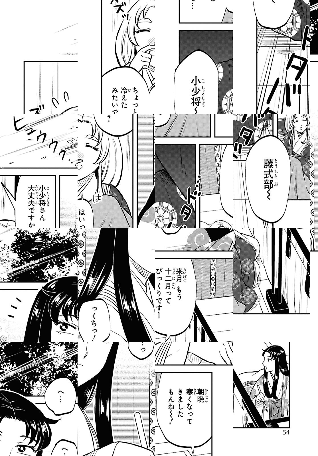 34歳。陰キャ。サブカル女。シングルマザー。しかし彼女には才能があった――!! 世渡り下手の才女・紫式部は、夫を失って以来、悲しみを癒すべく創作活動に打ち込んでいた。描き上げた作品が話題になり、界隈で神作家として知られはじめ、ついに宮仕えのお声がかかり…。慣れない人間関係に翻弄されながらも任された仕事は中宮さまの家庭教師――!? D・キッサンが描く平安コメディ最新作は紫式部!!