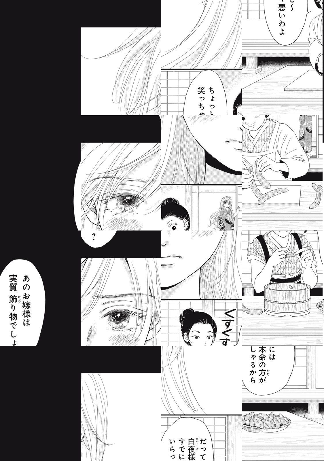 貧しい家族を救うため、資産家の月神家へ嫁入りした光。だが、旦那となる白夜は一向に嫁として迎え入れてくれない。彼いわく「俺の嫁になると食われる」そうだ。人とは思えないような冷たくも美しい魅力を放つ白夜、そして月神家の一族が抱える秘密とはーー。和風ファンタジー婚姻譚、開幕!
