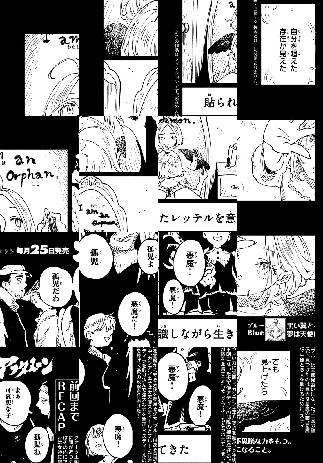 「天使」──彼らは女神の意思に従い、クオーツ王国を悪魔から守る英雄。黒い翼をもって生まれた孤児のブルーは、天使を夢見る平和な毎日を送っていた。だがとある日、とある王子との出会いを境に、彼女の運命は動き出す。カナダ出身の超俊英が描く、圧倒的な世界観のダークファンタジー!