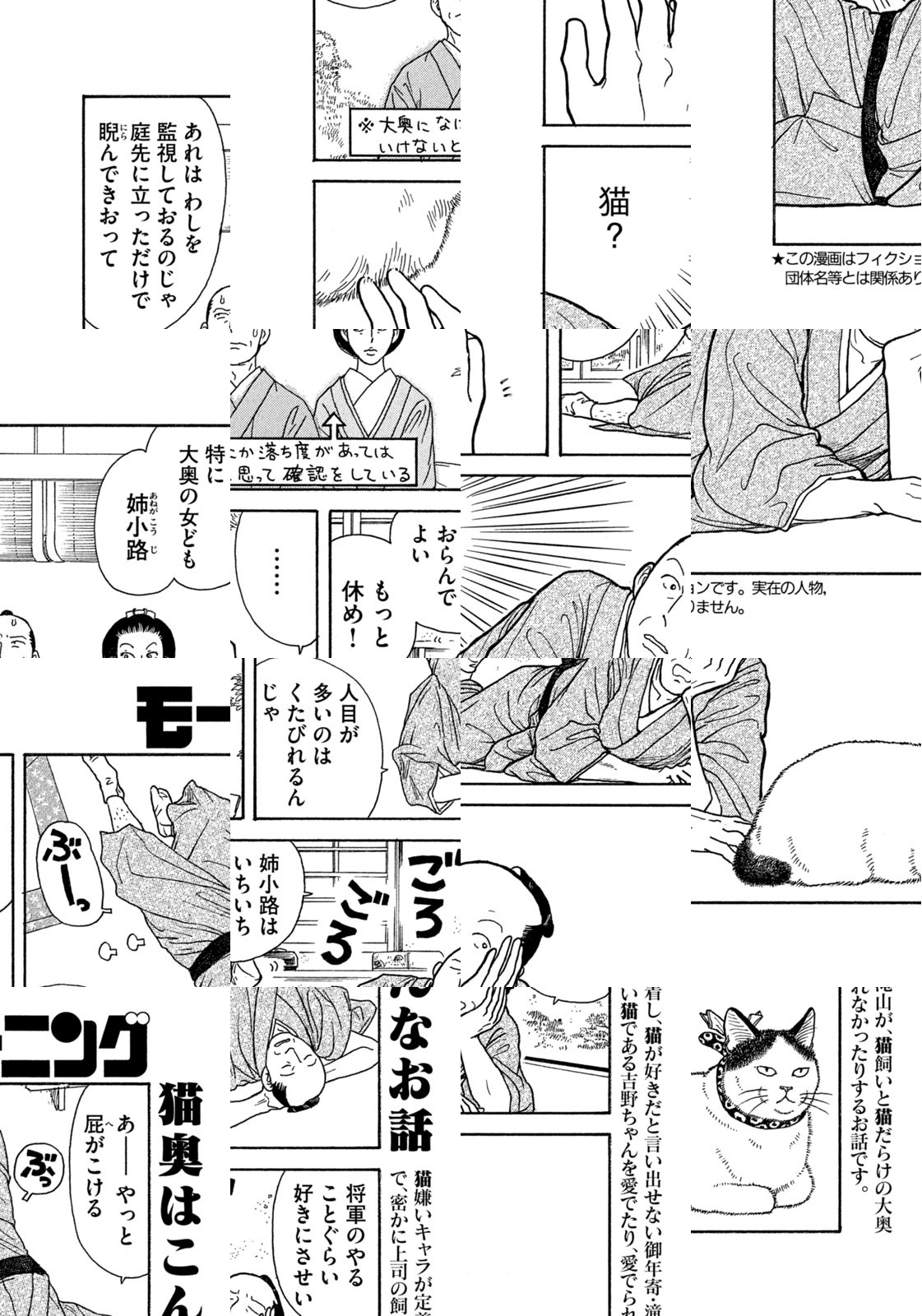 江戸時代。大奥に仕える女性たちの多くは、生涯独身であった。そんな彼女たちが、持てあました時間と愛情を注いだ対象、それは――にゃんと、ネコだった!? 大奥に暮らすオンナとネコの日常を描くほのぼのショート!