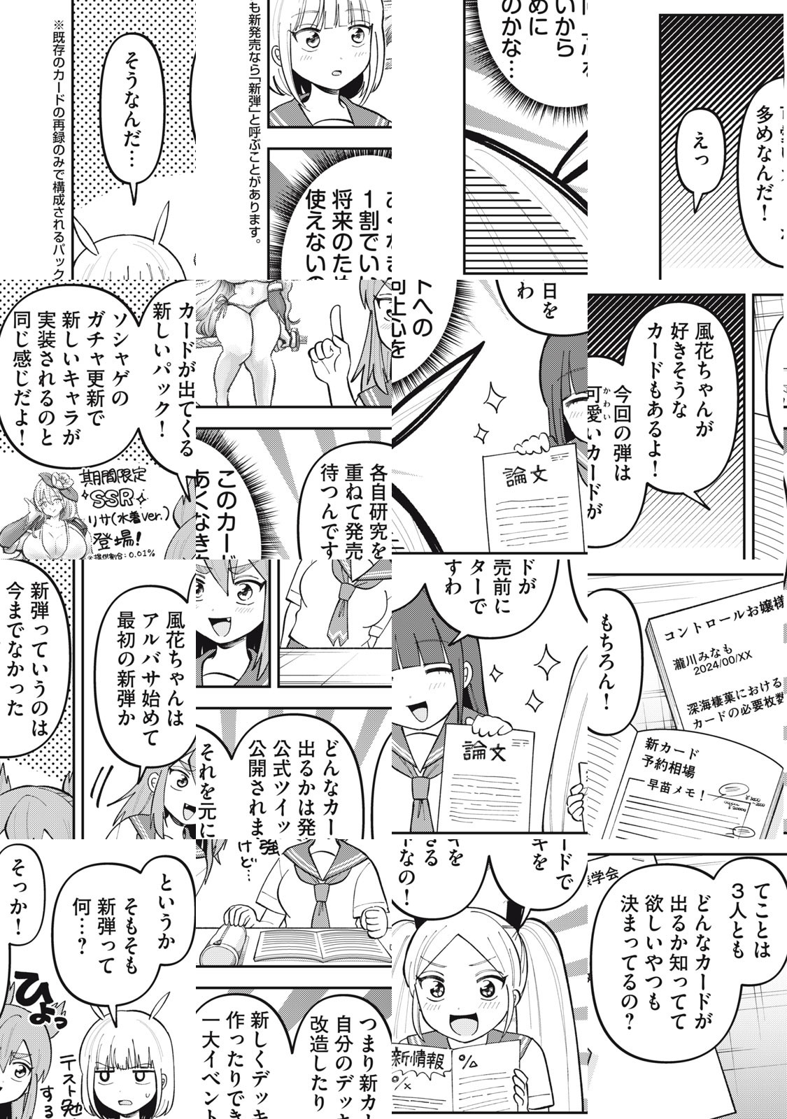 普通の女子高生・嵐山風花は、ある日間違えてトレーディングカードゲームショップに足を踏み入れてしまう。そこで同じクラスのカードゲーマー少女・火継焔に出会い、何故かカードゲームを始めることに!何にも夢中になれなかった風花はだんだんカードゲームのセンスに目覚めていって…!?普通の青春とは一味違う、カードと罵声が飛び交う日常が幕を開ける!読まなきゃアド損!カードゲーマー女子高生コメディ!