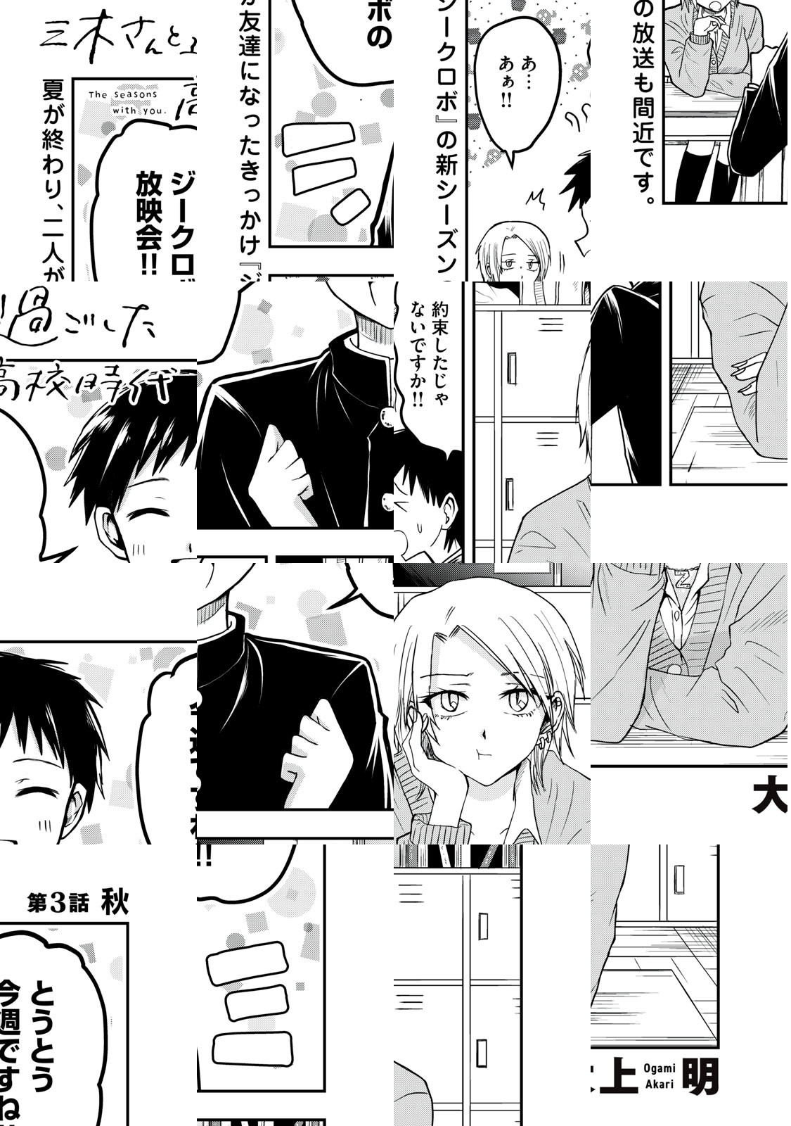 きっかけは、些細なことだった。冴えない地味男子・辻本と、悪い噂の絶えないギャル・三木さん。高校3年生で初めて同じクラスになった二人は友達になった。一緒にテスト勉強をしたり、進路に悩んだり、恋人ができたり、別れたり。なんてことない、でもきっと忘れられない。凸凹な二人が過ごす春夏秋冬の記録。