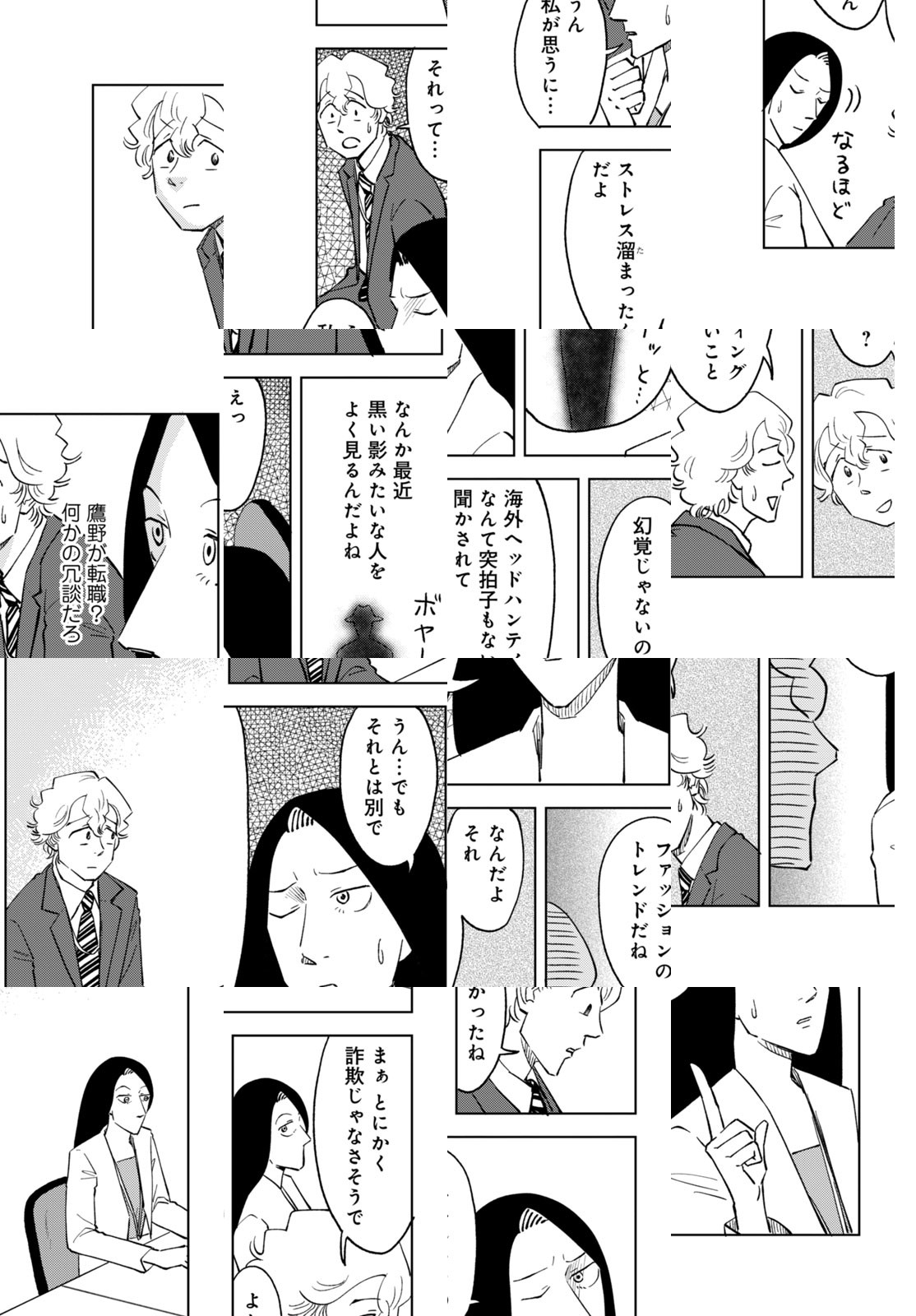 鶸田は就職活動中、ある会社の面接で見るからにデキる女性(同じく就活生)・鷹野に出会う。スマートな身のこなし、落ち着いた声、着慣れたスーツ、自信に満ちあふれているのに謙虚。縁あって一緒にその会社に入社したふたり。ただ、1年半後、彼女は社内ニートになっていた。