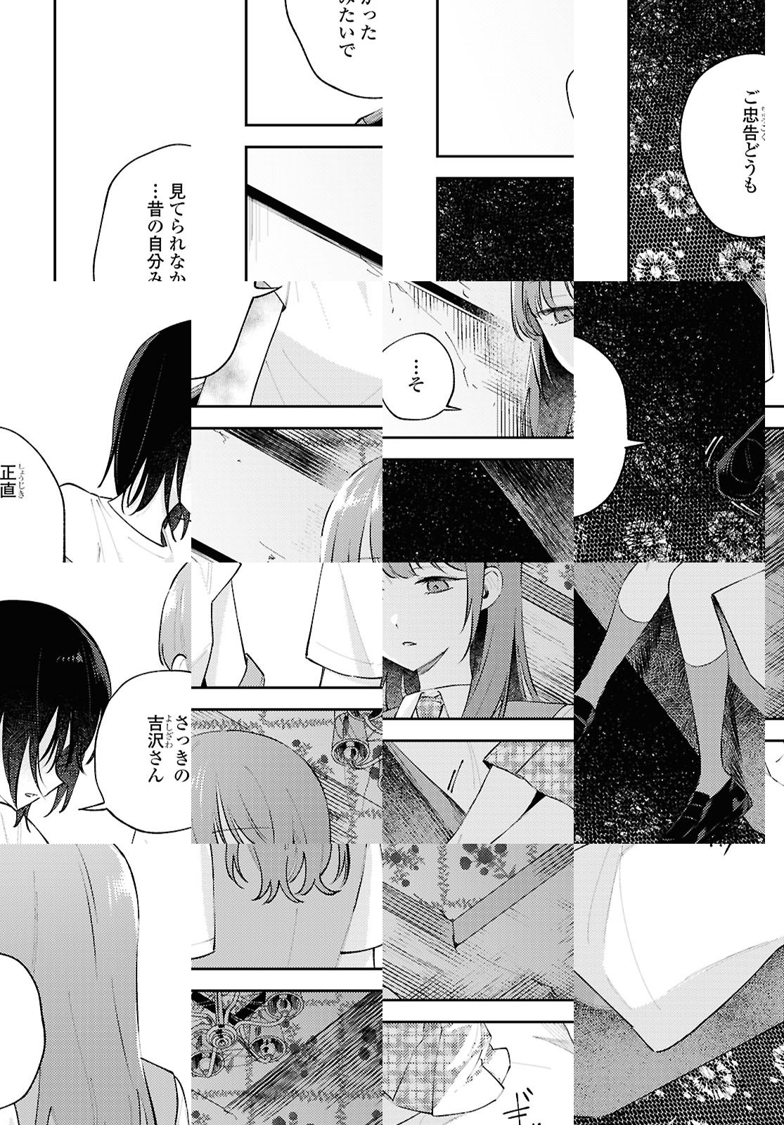 吉沢来未は、成績優秀で人当たりもいい生徒会長…というのは表向きの顔で、実際は母の束縛や教師の過度な期待に悩む日々を送っていた。ある時、不登校気味な同級生・直井を気にかけてほしいと担任教師に言われ渋々会いにいく吉沢だったが、直井は吉沢の本心を見透かしたように蔑むだけだった。ストレスも爆発寸前、吉沢は不意に万引きをしそうになる気持ちをギリギリで抑えるが、その一部始終を直井に録画されていて……逃げ場のない日常でもがく二人の、バイオレンス青春ストーリー。