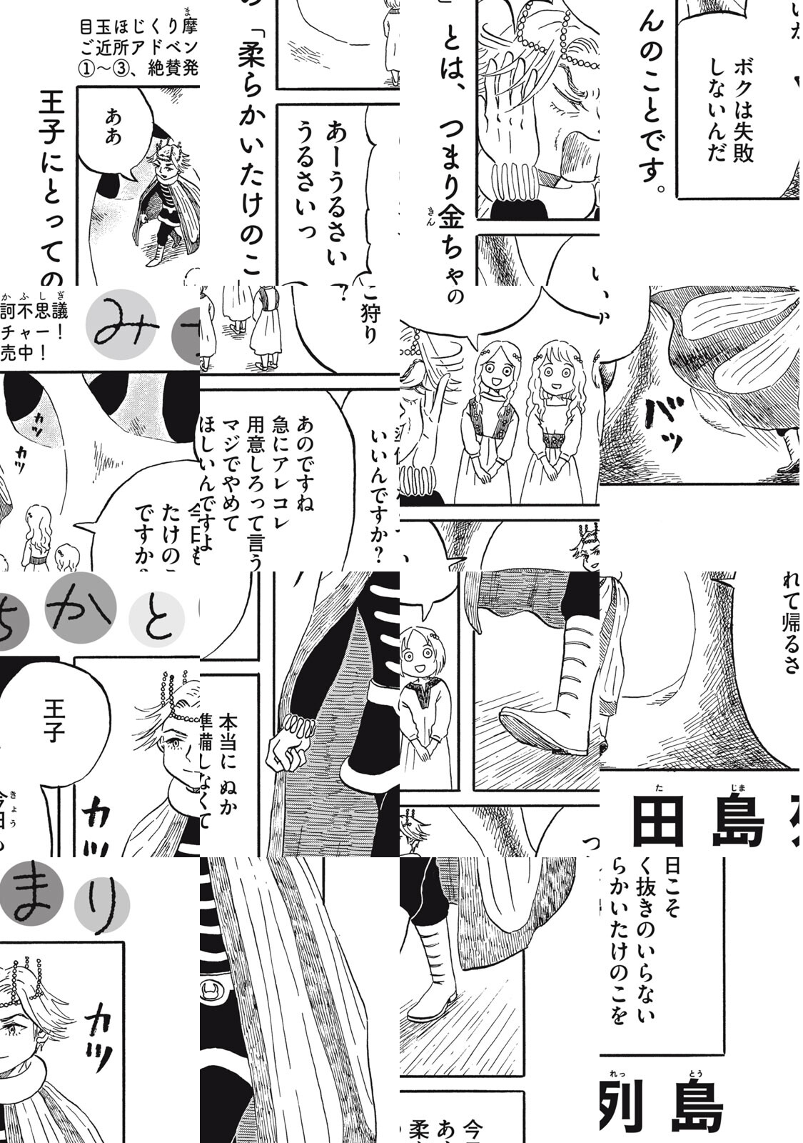 「竹やぶに生えてた子供を、神様にするか人間にするか決めるのは、最初にみつけた人間なんだよ」 8歳の女の子まりはある日、竹やぶでみちかと出会う。みちかが次々と起こす不思議な出来事のおかげで、まりの世界はこれまでと一変してしまうのだった。『子供はわかってあげない』『水は海に向かって流れる』の異才・田島列島が贈る、ゆるふわちょいグロ神話風味ガールミーツガールが開幕。