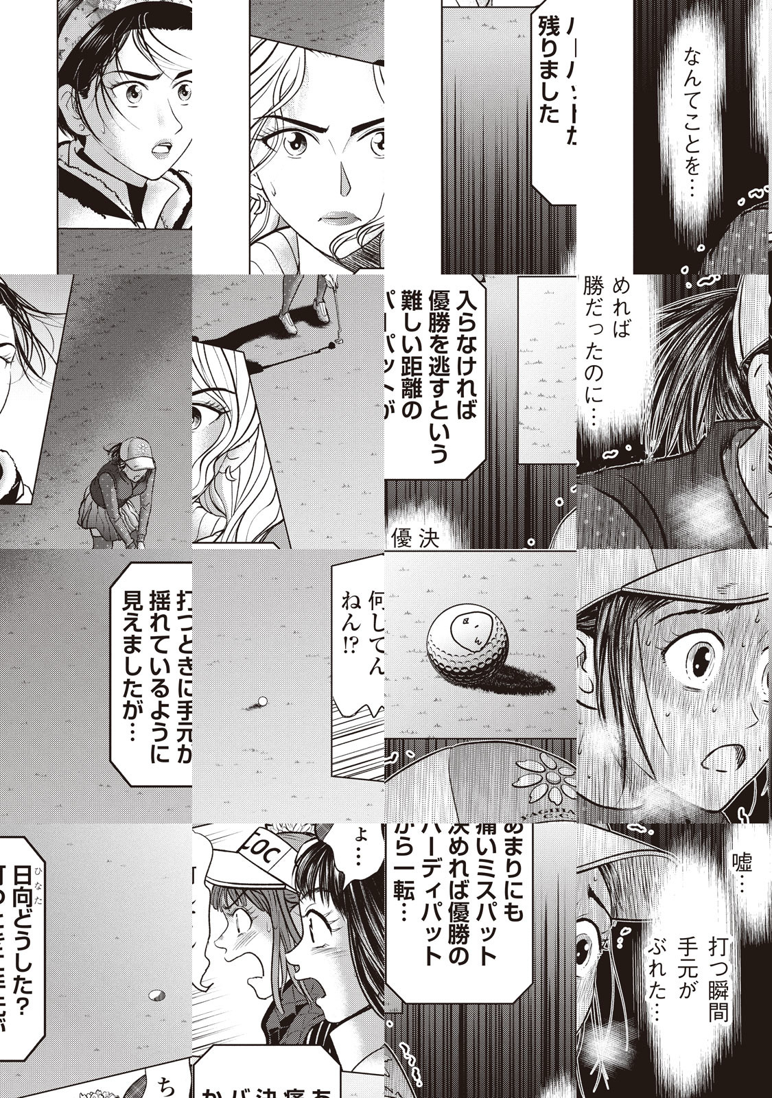 「ひよこ」こと日向みよこ20歳は祖父・銀次郎とともに初勝利を目指す、昨年賞金ランキング108位の新人プロゴルファー。参戦したツアーの初日で、昨年の賞金女王・フレイザー絵理奈と同じ組になってしまった。ひよこは夢に向かって飛ぶことができるのか? 逆転と逆襲、バウンスバックの物語が始まる――。