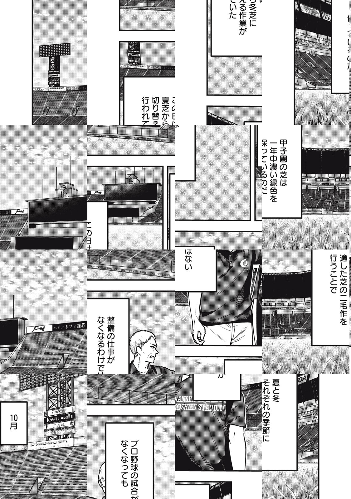 絶望的な運動神経の持ち主・雨宮大地は、自分とは正反対の弟や頑なな父への鬱屈を抱え、甲子園のグラウンド整備を請け負う阪神園芸へと入社する。ところが、持ち前のセンスのなさから、仕事は失敗続き。広いグラウンドのなかで、たったひとりうろたえる自分は、本当に一人前のグラウンドキーパーになれるのか? 人気青春小説を甲子園100周年に合わせて、待望のコミカライズ! さわやか青春ストーリー!