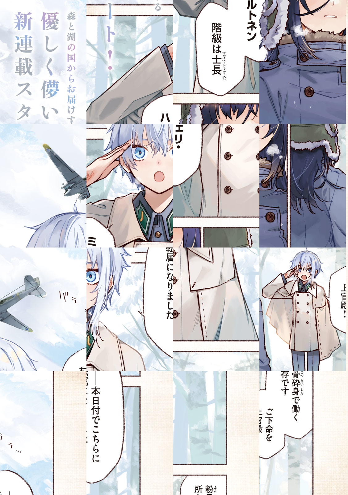 行き場を失ったひとりぼっちの二人はそっと寄り添い合いながら雪解けの日を待っている――。戦争が終わって4か月経った冬の始まり、未だ戦争の爪痕の残る森で出会ったのは戦場しか知らない元少年兵のミェリと故郷を奪われた退役軍人キルヤシュカ。「戦後」を必死で生き抜く2人の逞しくも儚い雪国スローライフ!