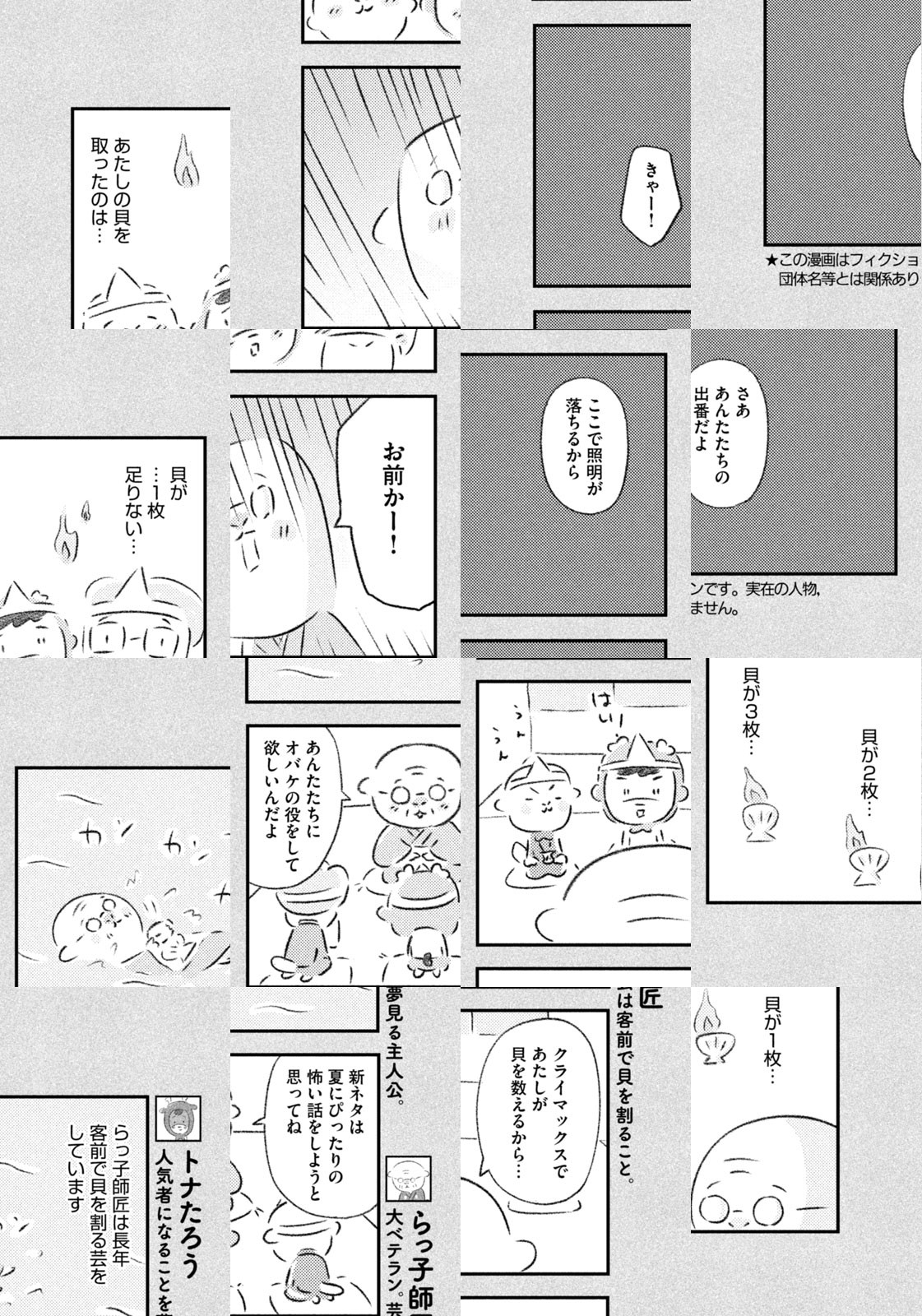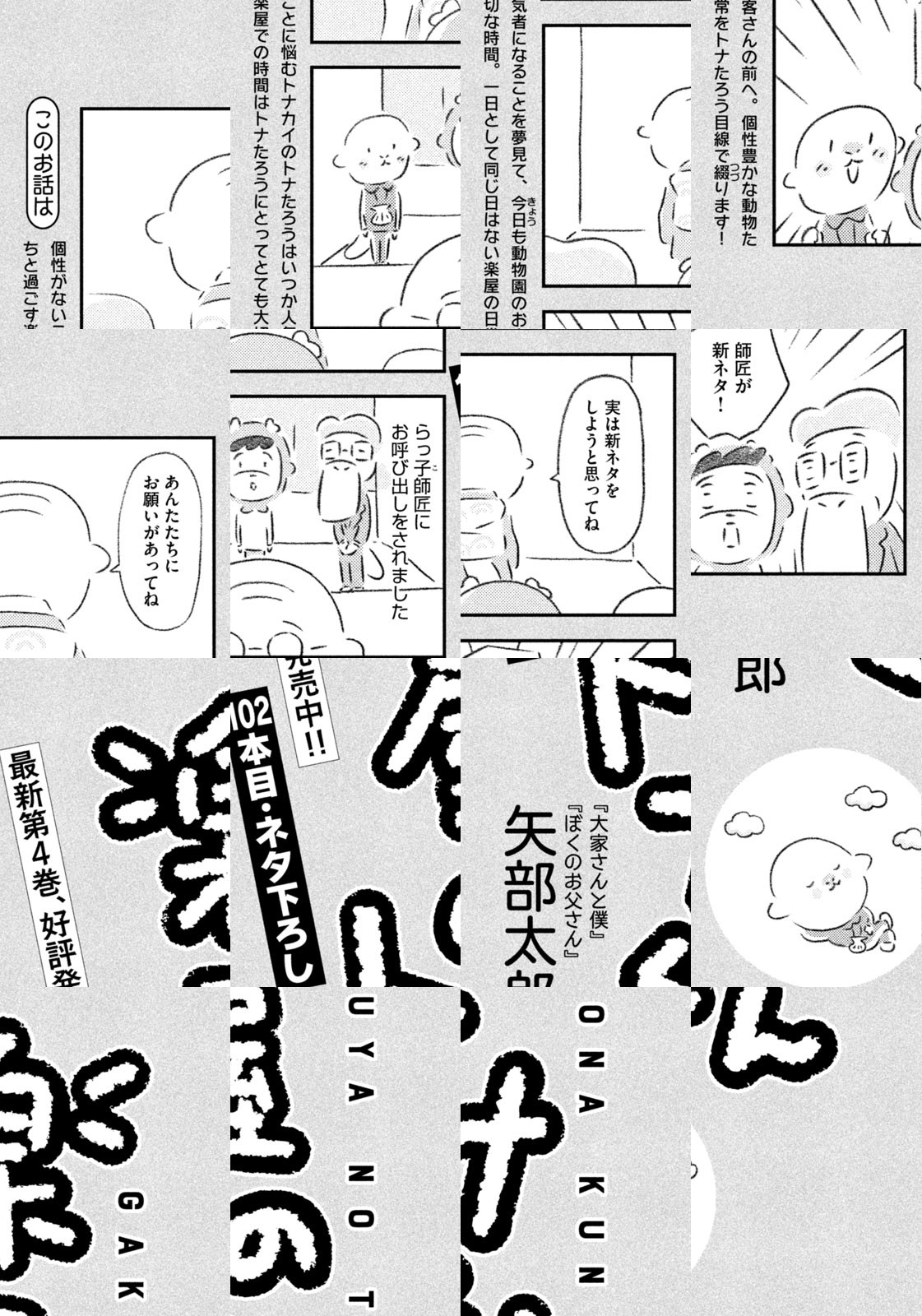 先輩にはいびられ、後輩には舐められ、お客さんには気づかれない主人公・トナカイのトナたろう、ちょっとガサツでデリカシーのないスカンクのポール先輩、元気すぎるお猿のアーコ、大人気のパンダくんなど、どこか見たことあるような動物たちの楽屋での悲喜こもごもなアニマル賛歌。自分の才能や“動物関係”に今日も悩みながら切磋琢磨する動物たちの舞台裏を覗いてみませんか?