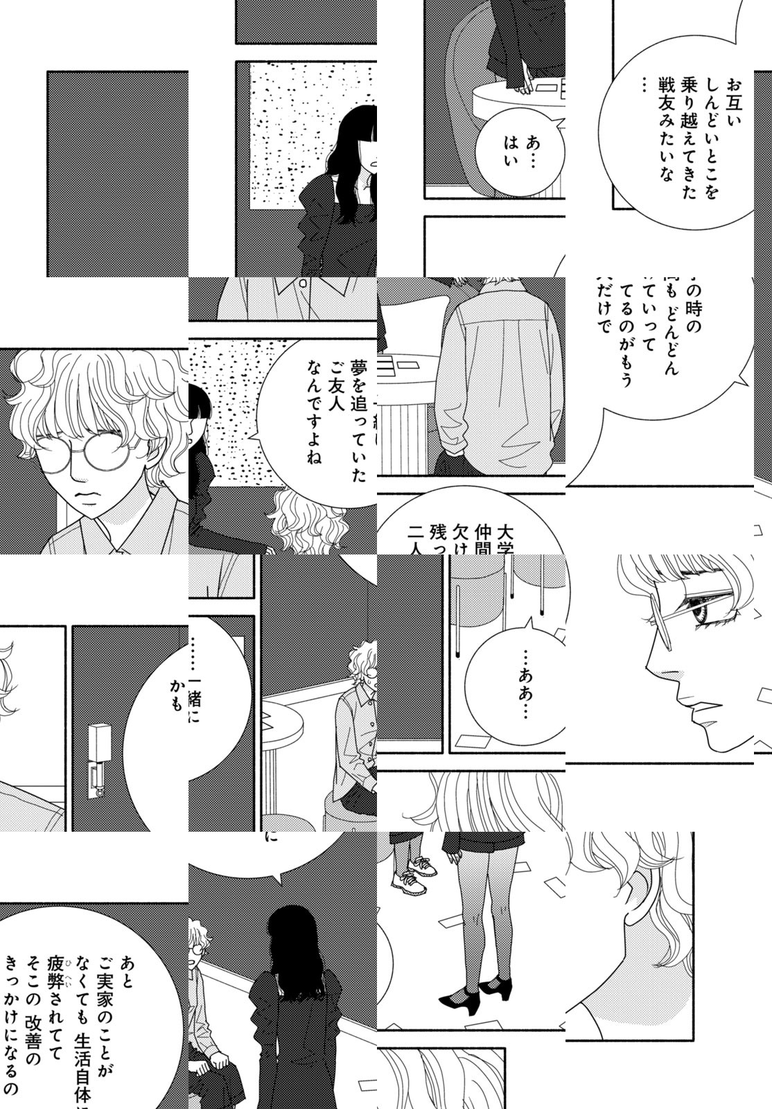 古い洋館にひとりで住むお金持ち黒江と、いきなり仕事も恋も失った江間。ふたりが偶然出会い、とけたりとけなかったりする謎の数々と、生まれる最高のパフェたち。海野つなみが描く、対照的な女ふたりの物語ー。“仲良くなくても一緒にいれます”