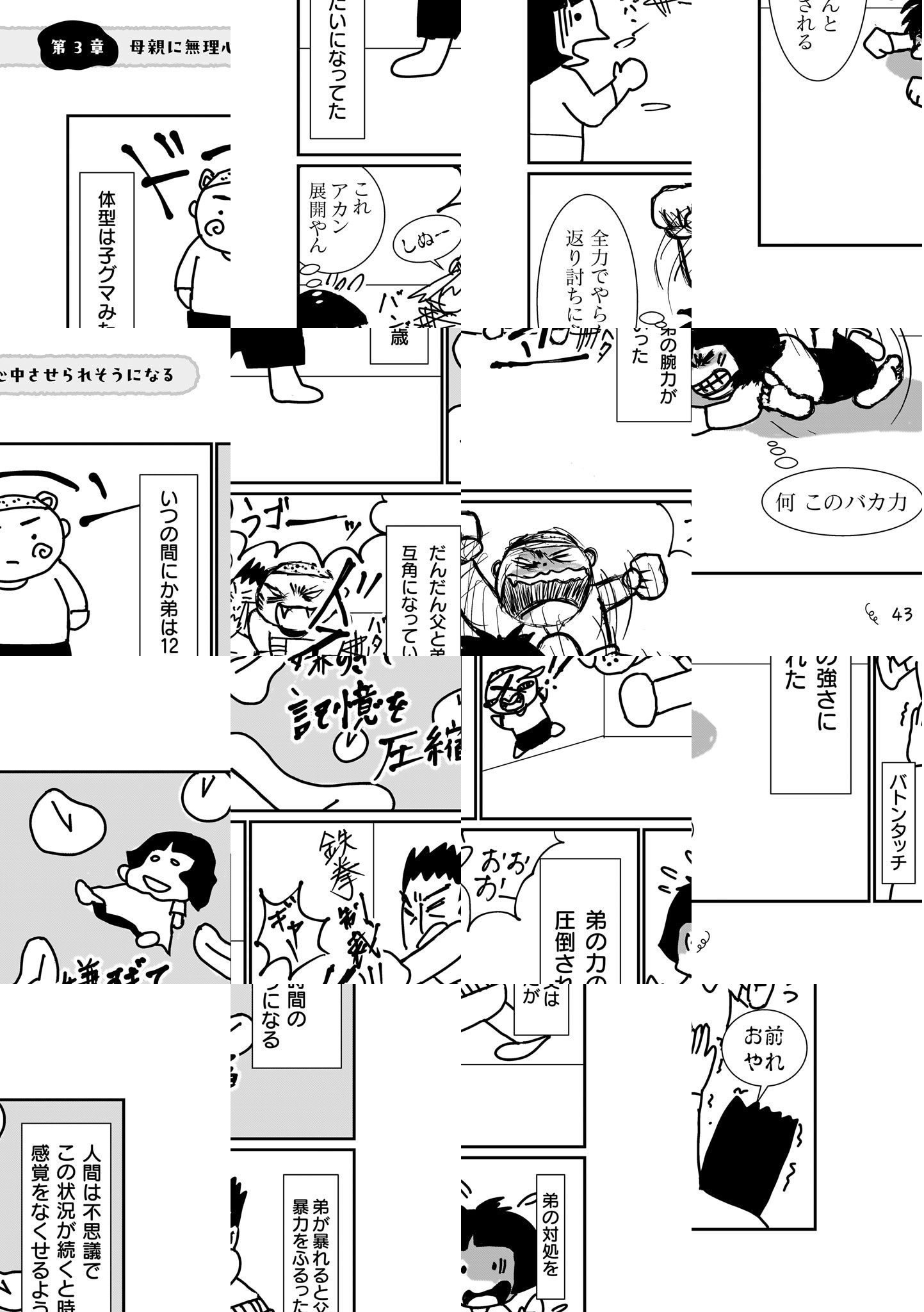 きょうだい児=障害をもつ兄弟姉妹がいる人のこと「重度の知的障害」「自閉症スペクトラム障害」「強度行動障害」をもつ1歳年下の弟。カルト宗教にハマってDVを繰り返すほぼ失業者の父。家出と薬物の過剰摂取を繰り返す母。凄絶すぎる家庭環境で育った著者は、いかにして自分を守り、最終的に家族と離れる決断を下したのか。実体験をつづった衝撃の一作。〇カルト宗教の修行で滝行と登山に明け暮れる夏休み〇いじめを繰り返す男子を圧倒的暴力で粉砕〇いじめを主導する女教師を徹底論破して黙らせる〇ストレスで声が出なくなった状況を驚きの方法で自力解消〇どうせ無理だと言われ続けた難関高校、大学合格を果たして父親を黙らせる〇原付で入れ歯を破壊して父親を黙らせる〇カルト教団内での女同士の闘いを観戦〇就職氷河期、職場のモラハラ・セクハラで闇堕ちしかける……etc