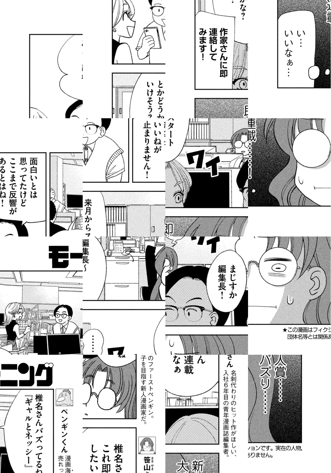 ある日、青年漫画編集者の笹山さんの元に持ち込みに来た新人は、なんとペンギンだった! ペンギンに漫画が描けるの? ペンを持てるの?? どうやって??? ペンギンくんと笹山さんの、まんが界で天下を目指す‶まんが道″が今、はじまるーー!!