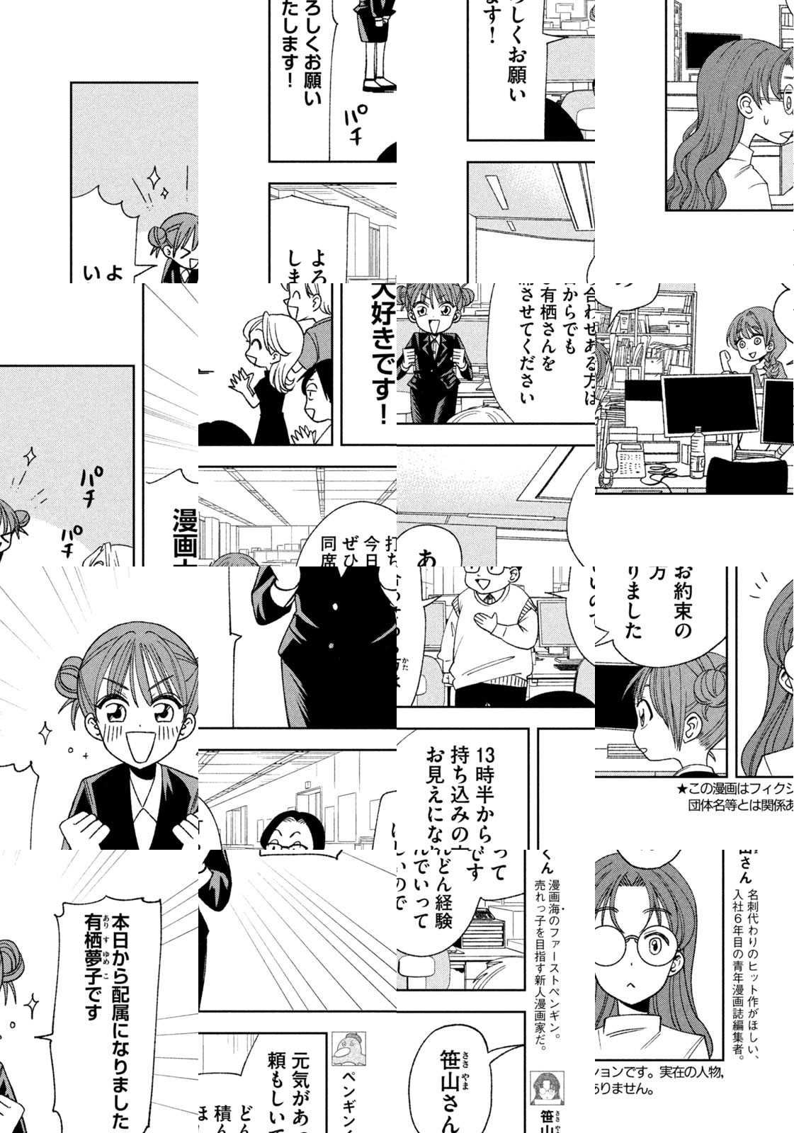 ある日、青年漫画編集者の笹山さんの元に持ち込みに来た新人は、なんとペンギンだった! ペンギンに漫画が描けるの? ペンを持てるの?? どうやって??? ペンギンくんと笹山さんの、まんが界で天下を目指す‶まんが道″が今、はじまるーー!!