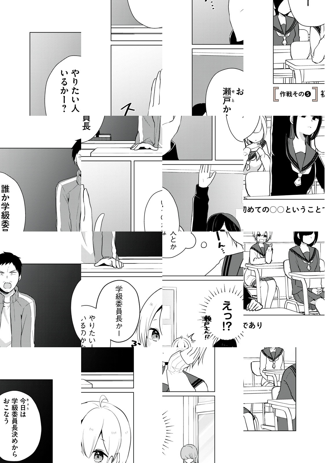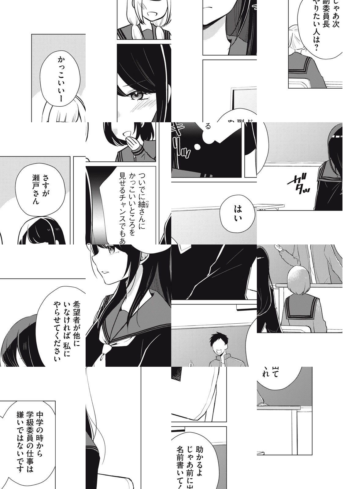 キレイでかっこいい学級委員長の瀬戸さん。笑った顔はきっと素敵なはず。……見たい! 入学式のときからちょっと接点があったドジっ子の紬ちゃんが、果敢に瀬戸さんを笑わそうと多彩な作戦を繰り出して失敗するショートコミック。……なのだけど、瀬戸さんの様子がどうもおかしい!!!!