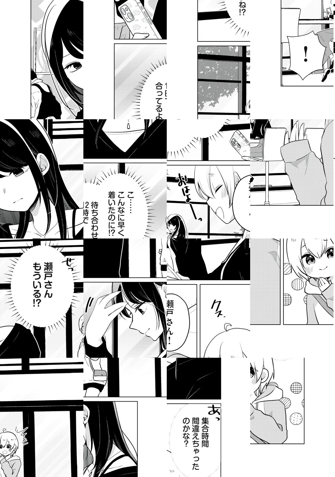 キレイでかっこいい学級委員長の瀬戸さん。笑った顔はきっと素敵なはず。……見たい! 入学式のときからちょっと接点があったドジっ子の紬ちゃんが、果敢に瀬戸さんを笑わそうと多彩な作戦を繰り出して失敗するショートコミック。……なのだけど、瀬戸さんの様子がどうもおかしい!!!!