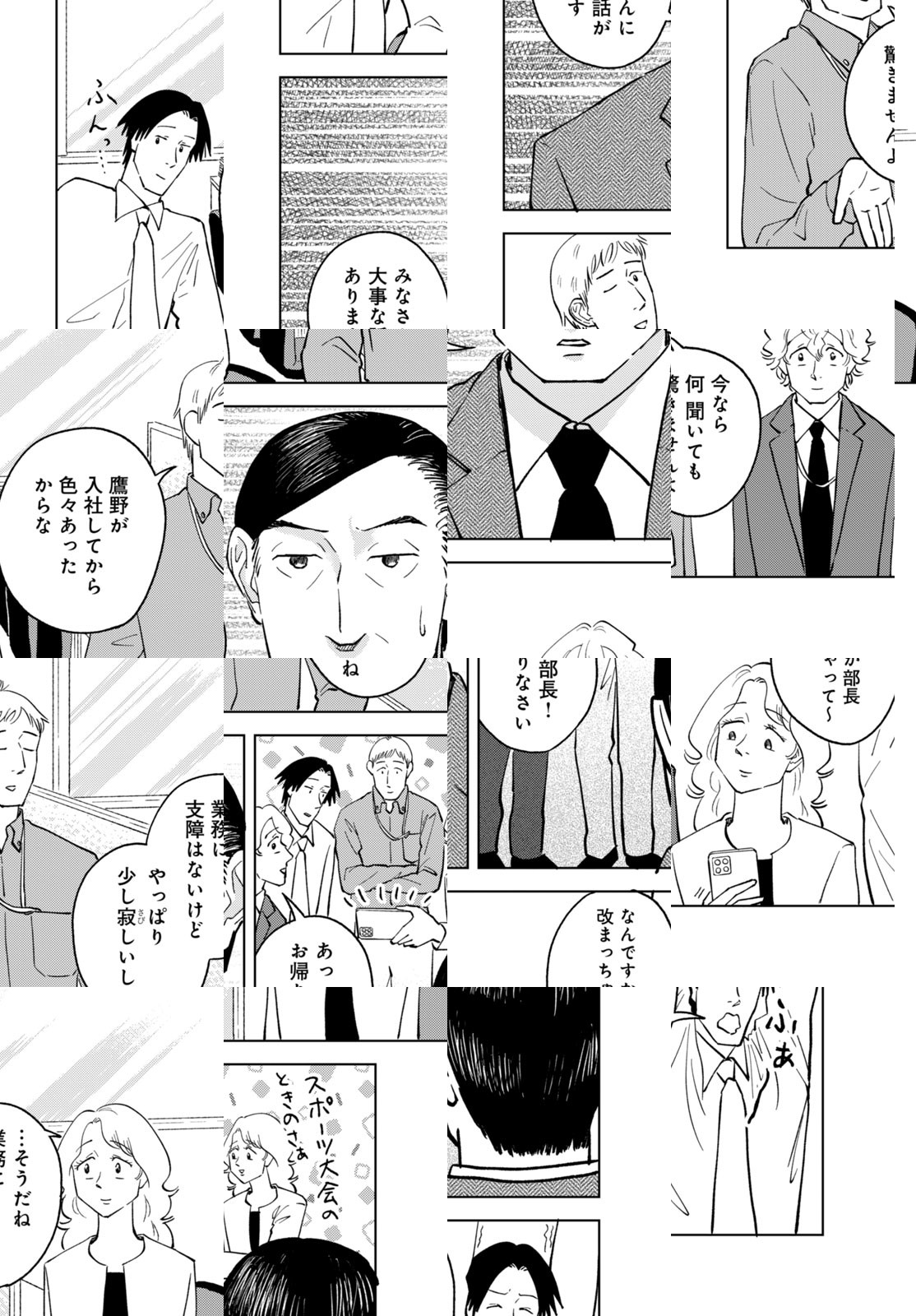 鶸田は就職活動中、ある会社の面接で見るからにデキる女性(同じく就活生)・鷹野に出会う。スマートな身のこなし、落ち着いた声、着慣れたスーツ、自信に満ちあふれているのに謙虚。縁あって一緒にその会社に入社したふたり。ただ、1年半後、彼女は社内ニートになっていた。