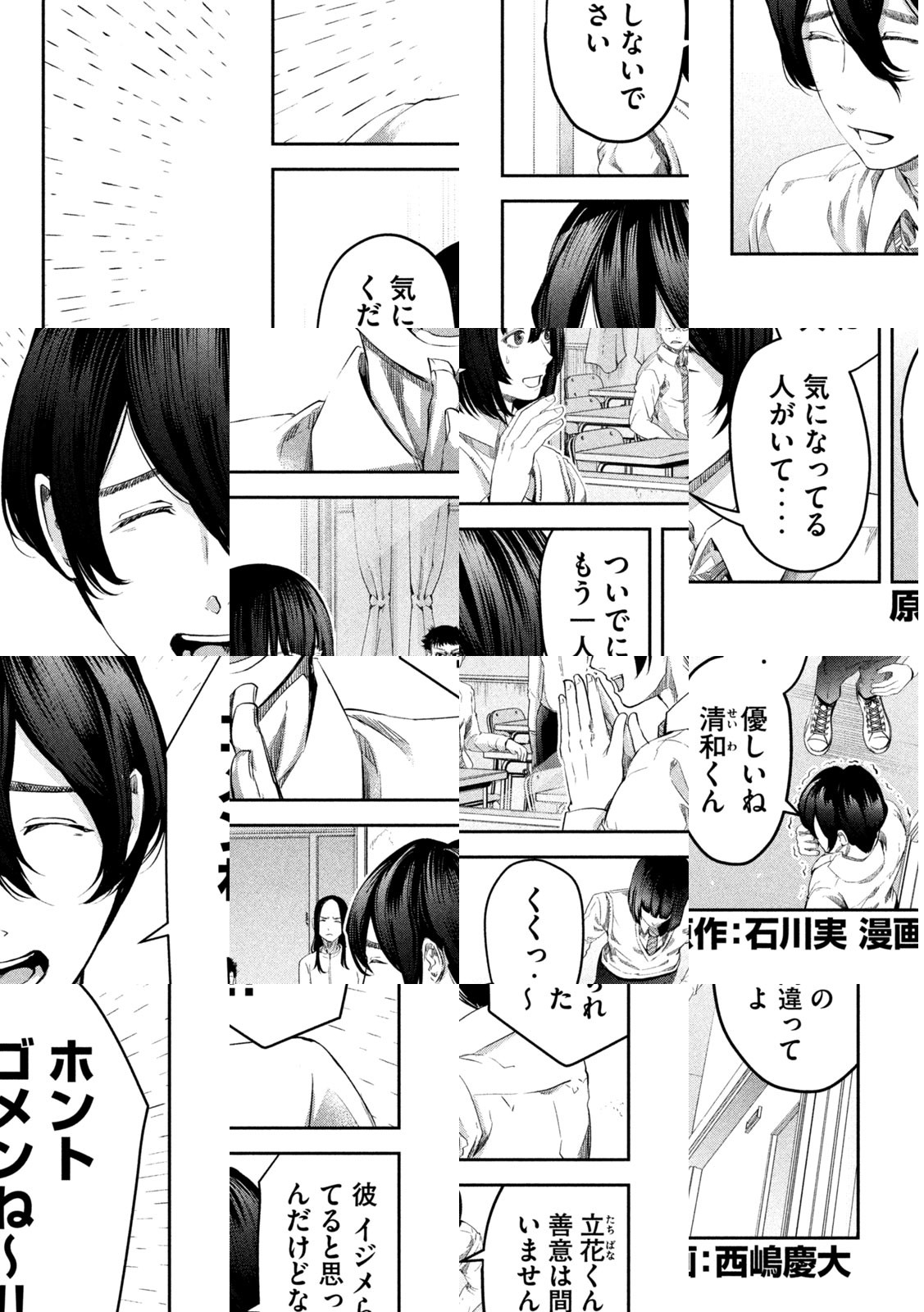 優秀な教師と完璧な監視体制により、イジメ0を実現した高校。そこに通う1年生の清和は、中学時代にイジメられていた元クラスメイト・四条さんに出会う。イジメがないこの学校で、しだいに心を通わせていく2人。しかしある日、清和は四条さんがイジメられていたことを知る。そして彼女は、屋上から飛び降りた──。衝撃の“イジメ0”ミステリー!!
