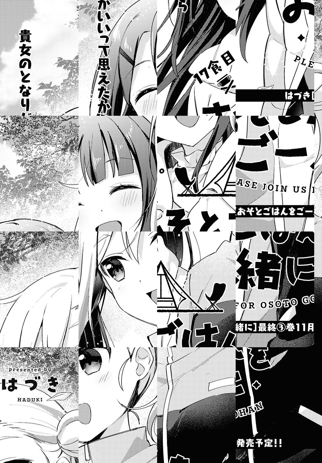 アパートの狭いキッチンに悩む料理好きの女子大生・風香が出会ったのは、料理が苦手で破天荒なアウトドア女子・よもぎだった。成り行きで始まったたふたりのおそとごはんは、なんだかとっても温かくて…女ふたりの助け合いアウトドアグルメ漫画スタート!