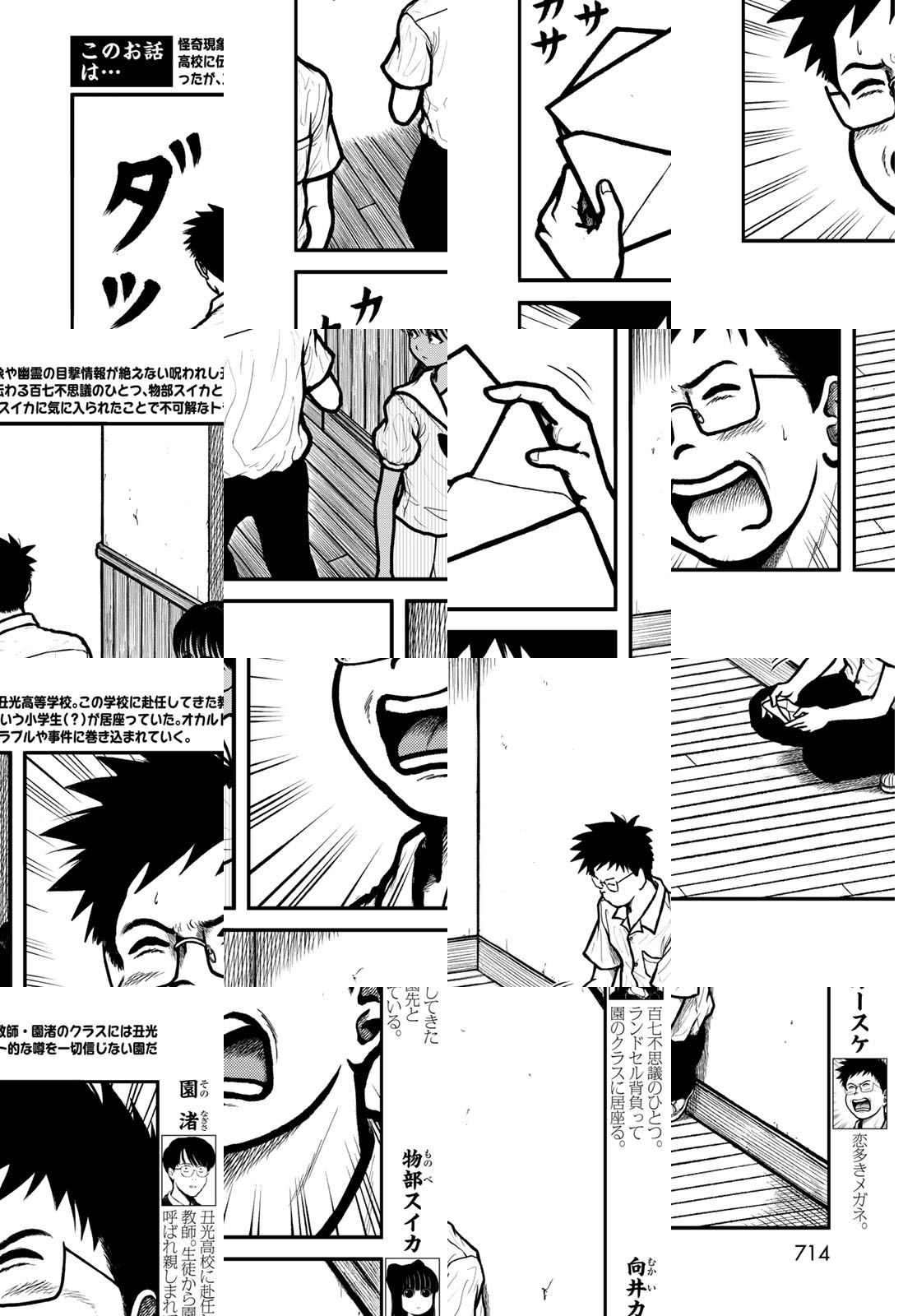 怪奇現象や幽霊の目撃情報が絶えない呪われし丑光高等学校。この学校に赴任してきた教師・園渚のクラスには丑光高校に伝わる百七不思議のひとつ、物部スイカという小学生(?)が居座っていた。オカルト的な噂を一切信じない園だったがスイカに気に入られたことで不可解なトラブルや事件に巻き込まれていく…。