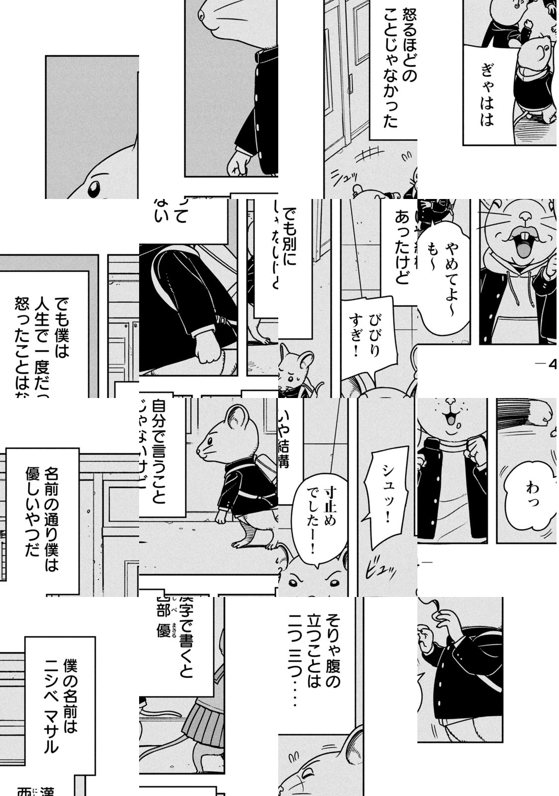 修学旅行だと思って連れてかれたどこかの島。そこで宣告されたのは殺し合いが始まることだった。28日後に来る迎えの舟に乗れるのは5人だけらしい・・・・。突然の出来事にうろたえる優柔不断で弱気な西部(にしべ)君。果たして彼は生き残ることができるのか。かわいくてみえてくらっちゃう、ねずみデスゲーム開幕。