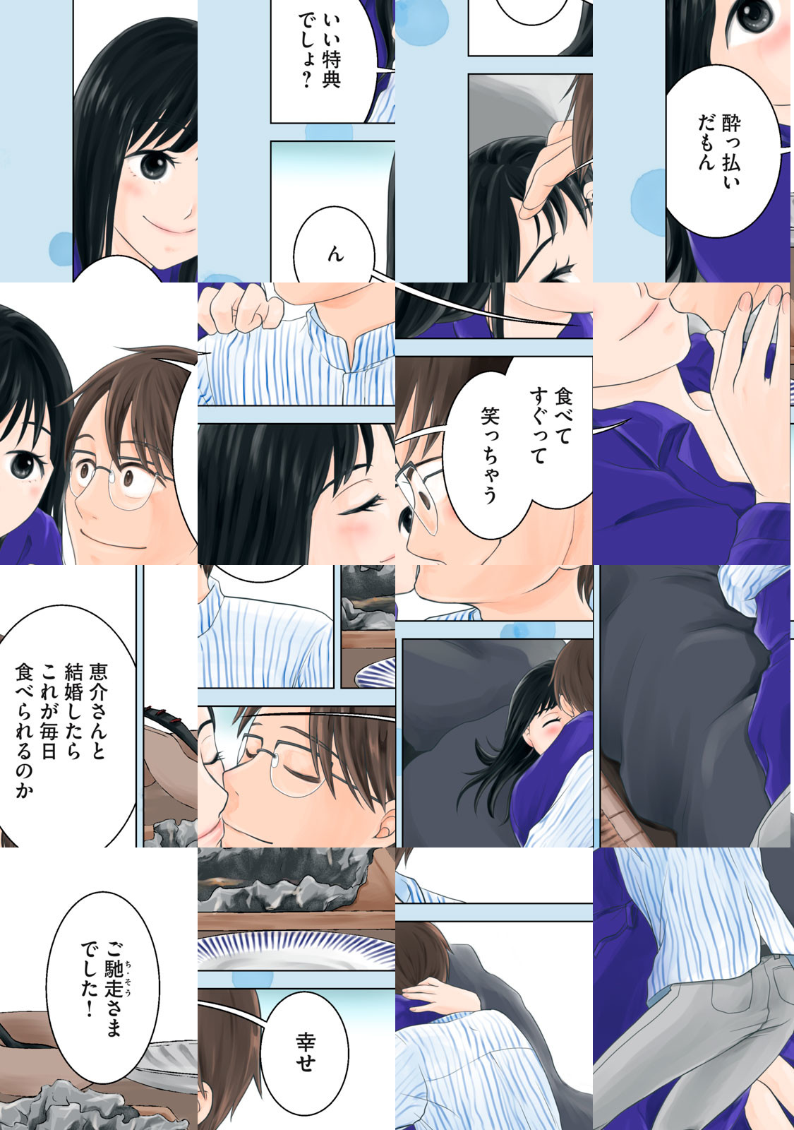 彩花さんの松山転勤を機に、結婚を決めた恵介。一緒に暮らすこともなく始まった新婚生活、彩花は仕事をバリバリこなす一方で、結婚前は実家暮らしで家事は苦手。お酒好き&食いしん坊な彩花のため、恵介は週末リモートで料理を教えることに。一緒に作って、一緒に食べて、おいしい時間に大満足……のはずですが、愛する彩花さんは画面の向こう。もどかしさが募る恵介に彩花さんは……?