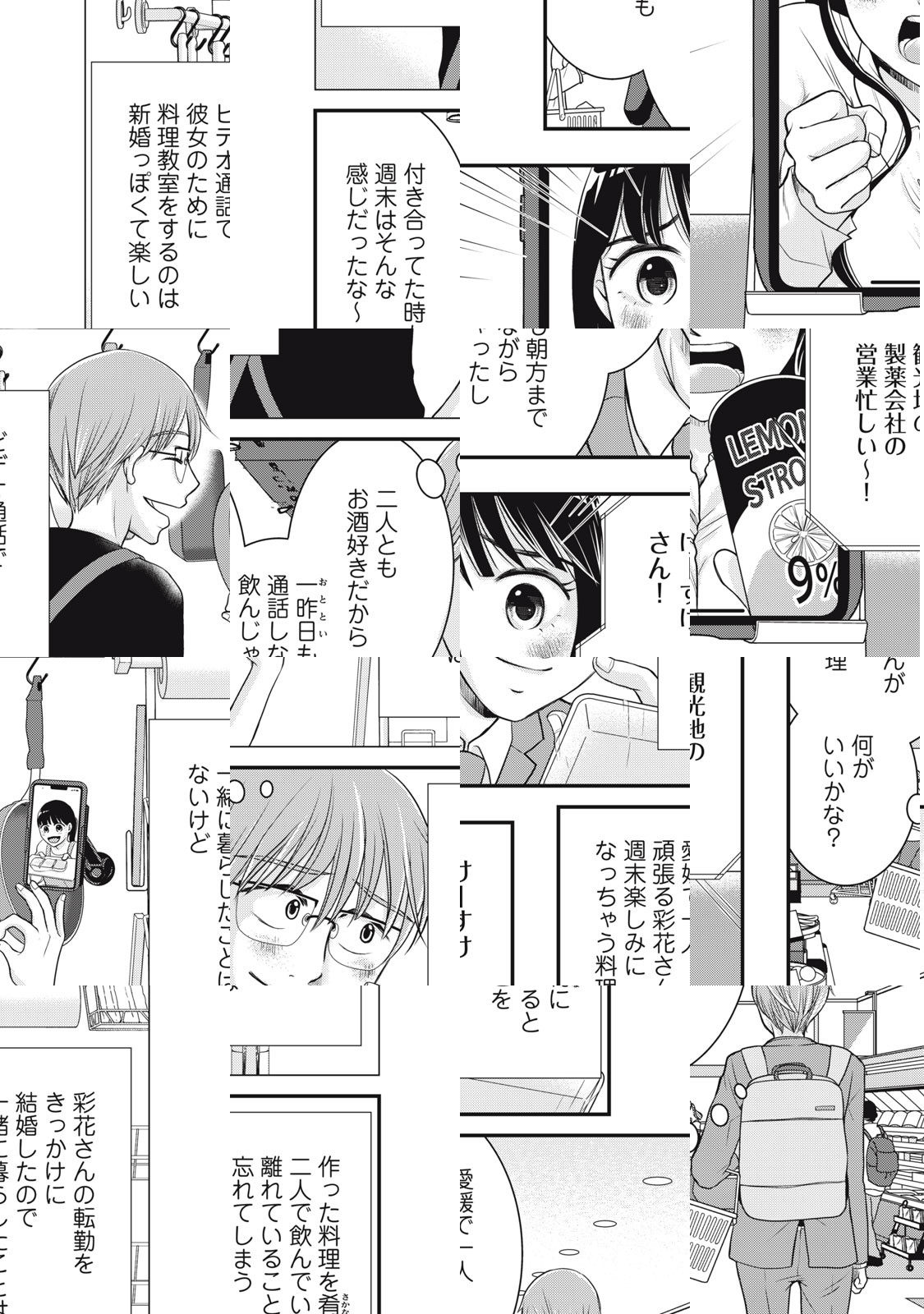 彩花さんの松山転勤を機に、結婚を決めた恵介。一緒に暮らすこともなく始まった新婚生活、彩花は仕事をバリバリこなす一方で、結婚前は実家暮らしで家事は苦手。お酒好き&食いしん坊な彩花のため、恵介は週末リモートで料理を教えることに。一緒に作って、一緒に食べて、おいしい時間に大満足……のはずですが、愛する彩花さんは画面の向こう。もどかしさが募る恵介に彩花さんは……?