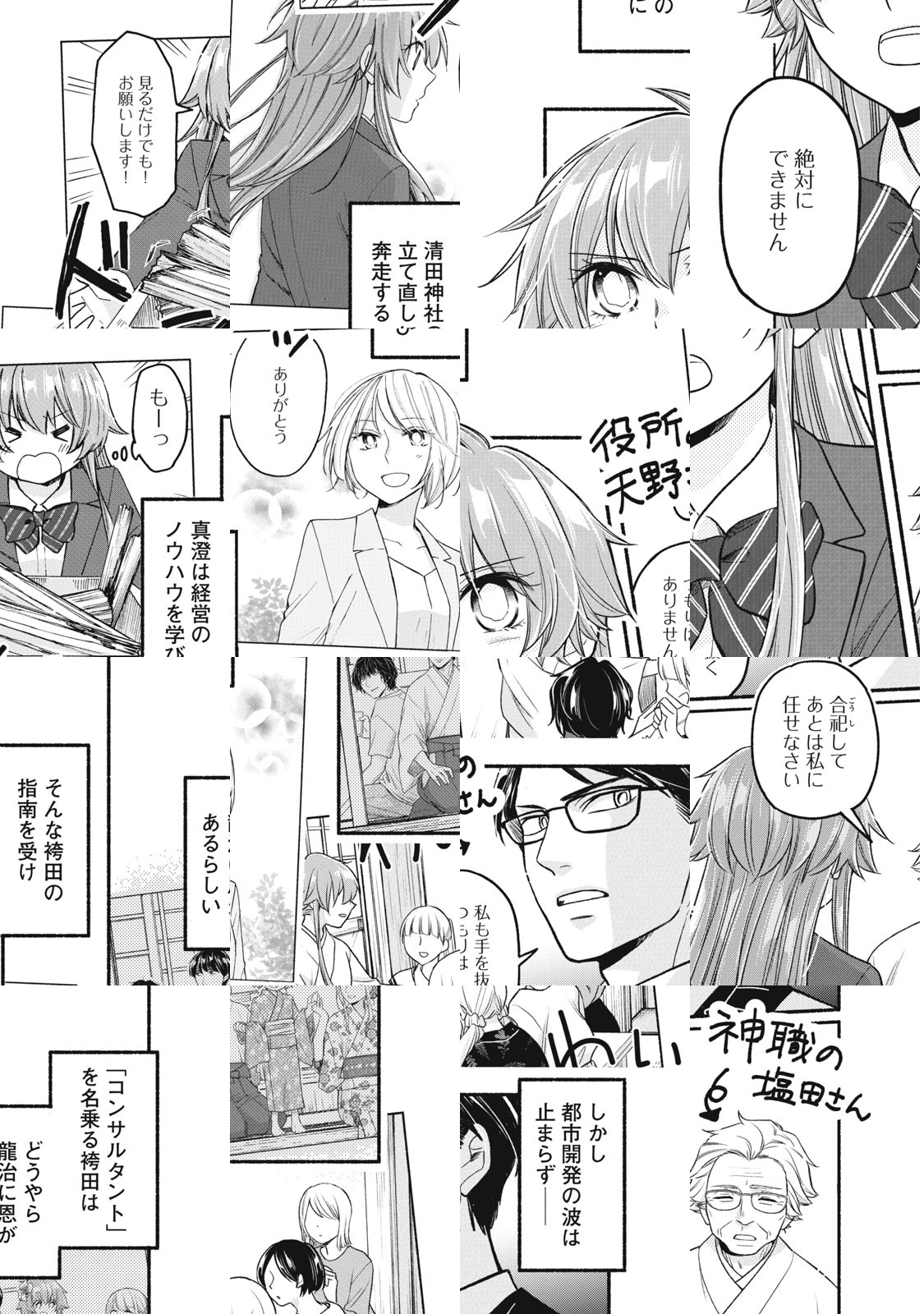 街に愛され人に愛されてきた清田神社。そこに生まれ育った女子高生・真澄は、大の神社マニア。でも、父が亡くなって3年、清田神社はすっかりさびれてしまった。何か手を打たないと街から追いやられてしまう…そんな時に現れた怪しいグラサン男。彼はこの神社の救世主か、それともとどめを刺す疫病神か? 神社やビジネスにまつわる豆知識満載、読むと神社にお参りしたくなるビジネスコメディ。