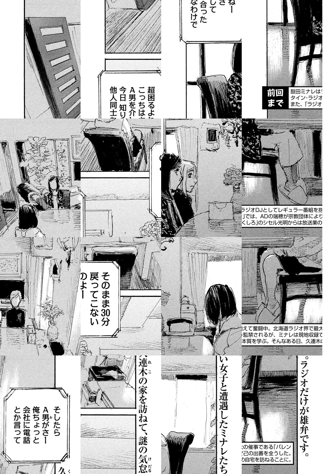 舞台は北海道サッポロ。主人公の鼓田ミナレは酒場で知り合ったラジオ局員にグチまじりに失恋トークを披露する。すると翌日、録音されていたトークがラジオの生放送で流されてしまった。激高したミナレはラジオ局に突撃するも、ディレクターの口車に乗せられアドリブで自身の恋愛観を叫ぶハメに。この縁でラジオ業界から勧誘されるミナレを中心に、個性あふれる面々の人生が激しく動き出す。まさに、波よ聞いてくれ、なのだ!