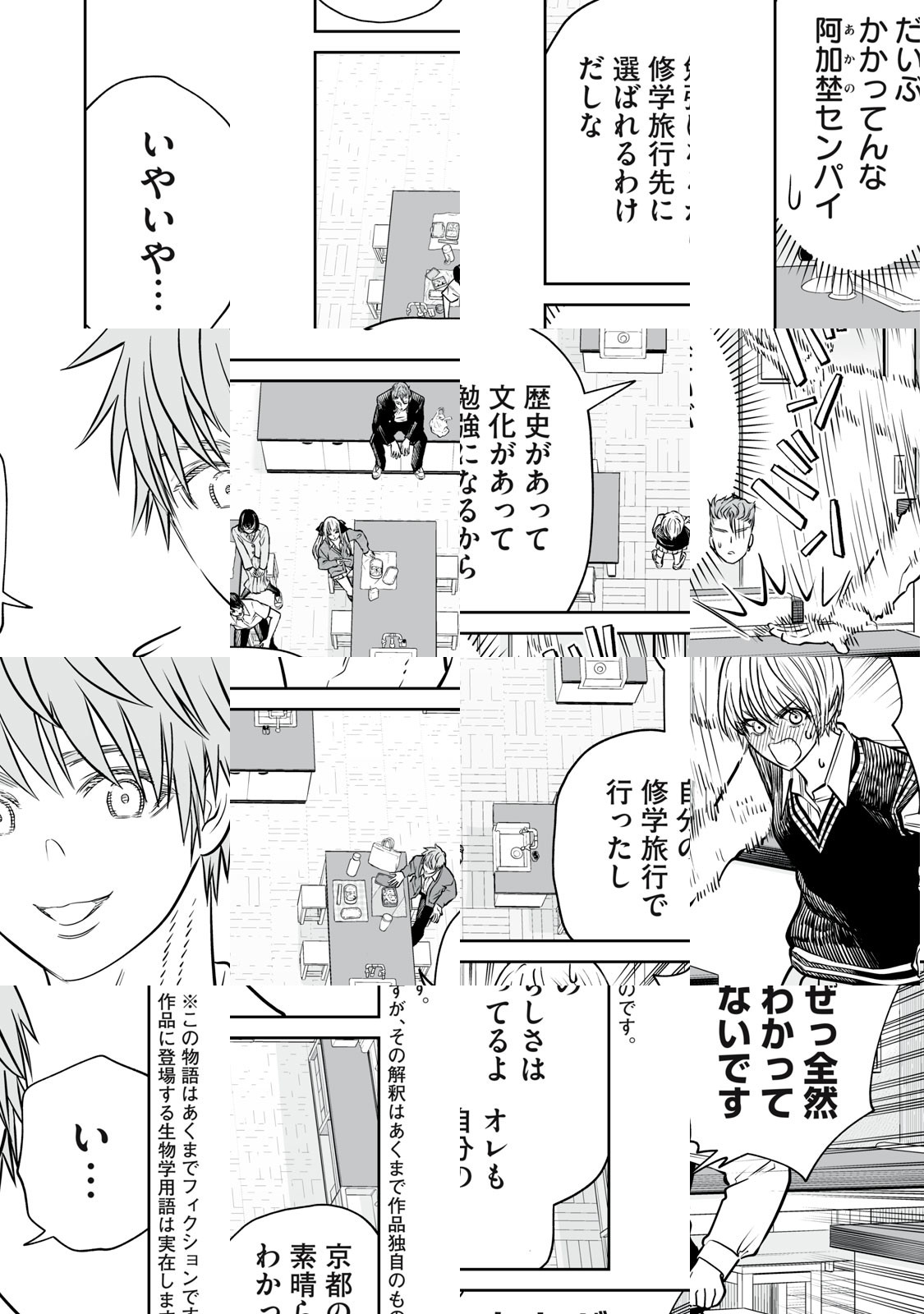 ”男らしさがない”という理由で、彼女に浮気されフラれた教師・久慈弥九朗。世の中ジェンダーフリーのはずでは…!? と苦悶する彼の前に、モデルでインフルエンサーで成績優秀で“生物学部”部長の女子・阿加埜が現れ、生物学部の顧問になってくれと迫る。そして、なぜ結局「男らしさ」がモテるために必要なのか、クジャクの派手な羽を例に“生物学的”な説明を始める…! 身も蓋もない残酷な真実を突き付けまくる、生物学コメディ!