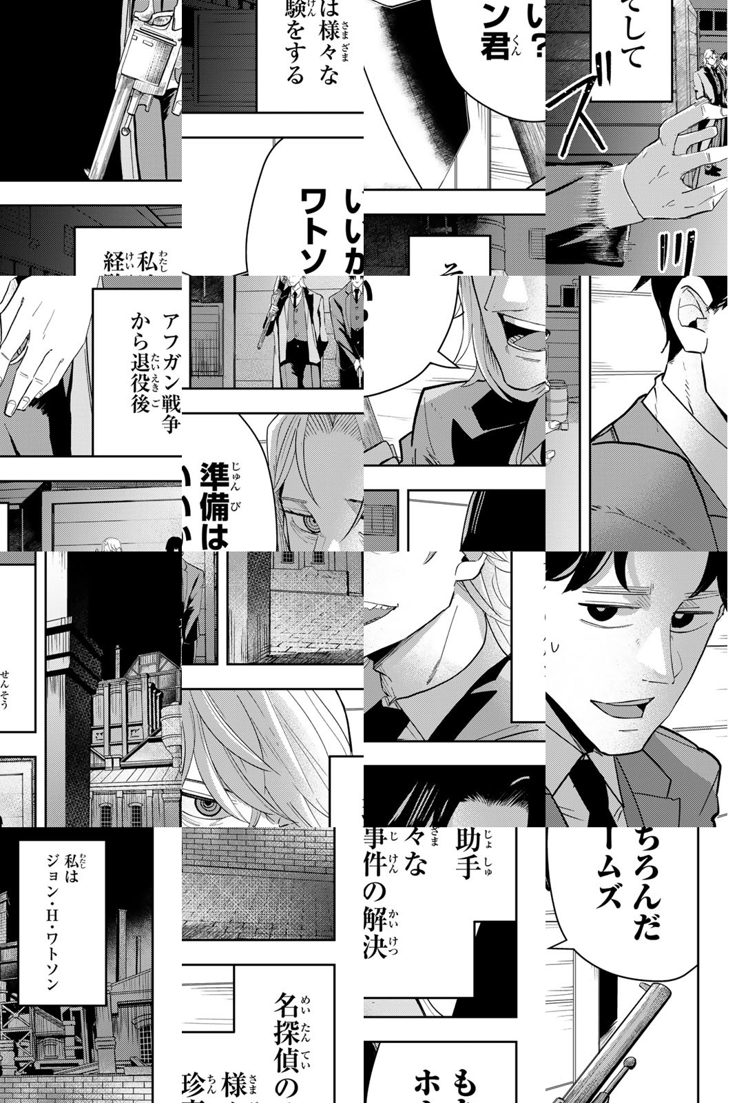 19世紀ロンドン。退役軍人のワトソンは、日々の生活に希望を見いだせず、貧しく暮らしていた。シャーロック・ホームズと名乗る男に出会うまでは——。名探偵とその助手が“吸血鬼狩り(ヴァンパイアハンター)”として街を駆ける。吸血鬼をもって、吸血鬼を制す。この数奇な人生の先に待ち受ける未来とは!? 稀代の天才探偵が織りなす未体験のダークアクション!!金も住む家もない退役軍人・ワトソン。偶然見つけたルームシェアの相手は“探偵”のシャーロック・ホームズ。ワトソンはホームズが家賃の7割を負担することを条件に、二つ返事で探偵助手となる。その晩、二人で事件現場に向かうが、ホームズが“化け物”に襲われ致命傷を負ってしまい…!?