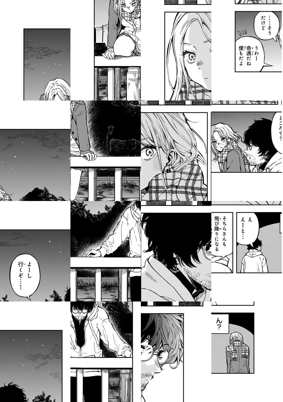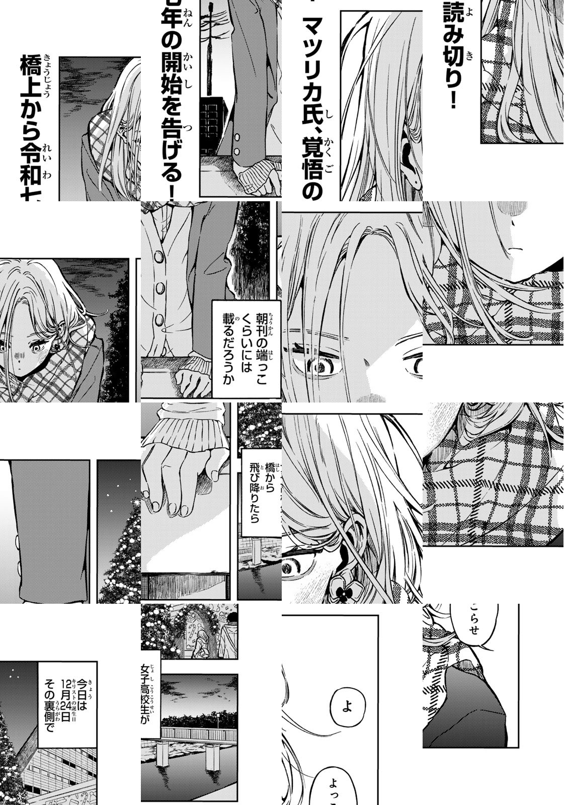 聖夜に橋の上から飛び降りようとする女子高生。その隣にも飛び降り志願の男が一人。