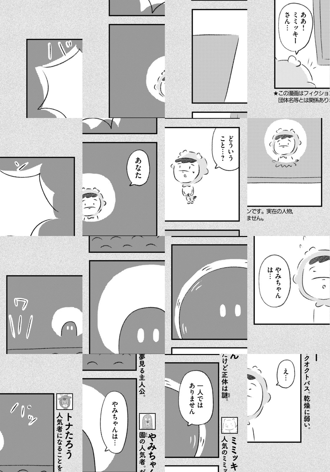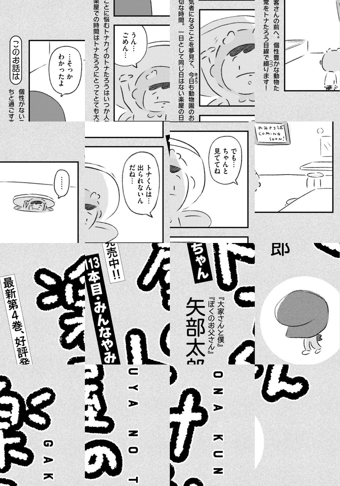 先輩にはいびられ、後輩には舐められ、お客さんには気づかれない主人公・トナカイのトナたろう、ちょっとガサツでデリカシーのないスカンクのポール先輩、元気すぎるお猿のアーコ、大人気のパンダくんなど、どこか見たことあるような動物たちの楽屋での悲喜こもごもなアニマル賛歌。自分の才能や“動物関係”に今日も悩みながら切磋琢磨する動物たちの舞台裏を覗いてみませんか?