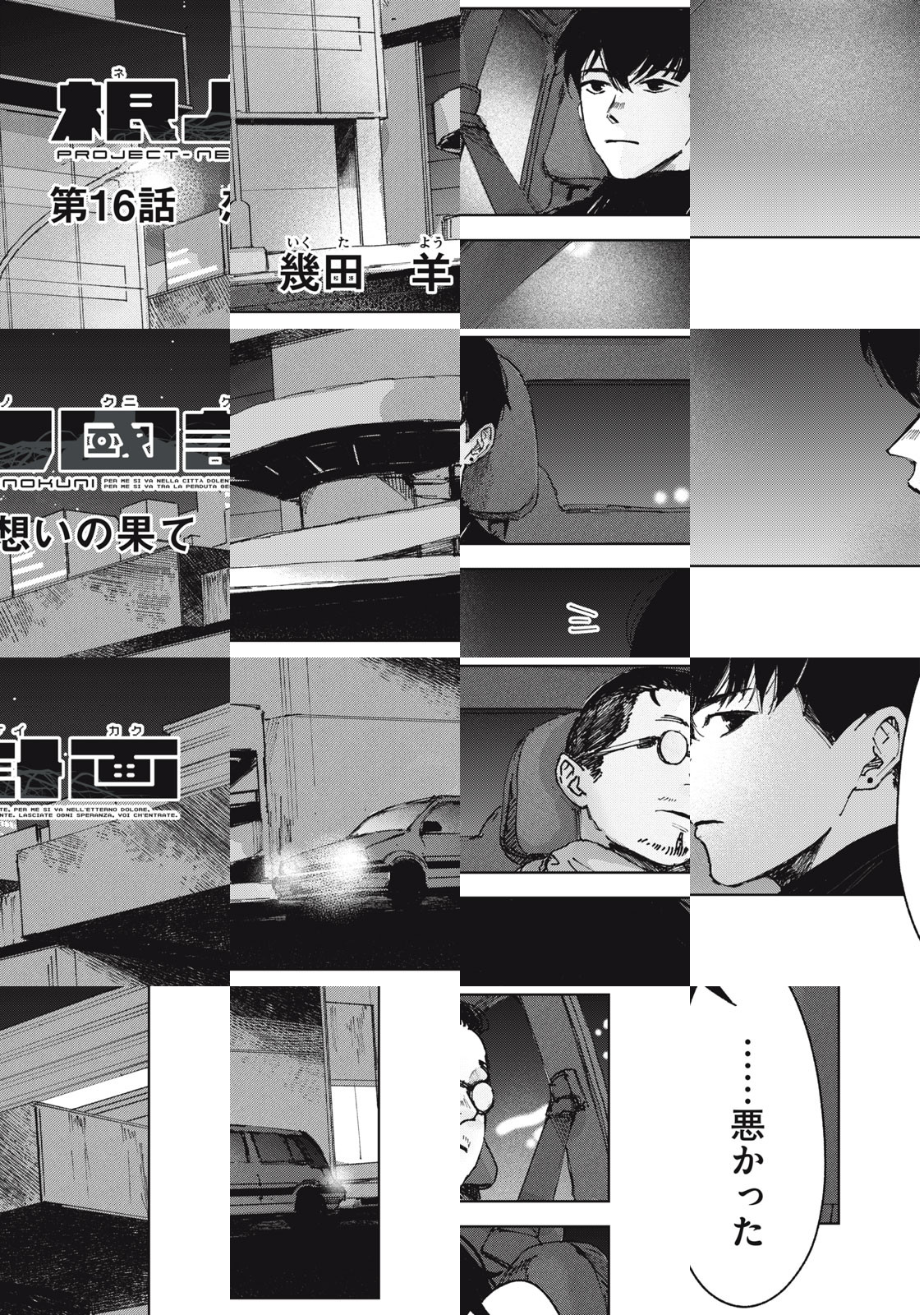 巨大な黒い慰霊碑が建つあけぼの町。かつて落ちてきた隕石によって甚大な被害を受けたこの街は、日本ワースト1の治安の悪さを誇っていた。「あけぼの町刑事課特捜二係」に配属された卯波ハルは、ある事件の捜査に取り掛かることになる。被害者の身体が真っ二つになるという凄惨な事件の現場で、ハルは謎多き生命体「ヨビト」と遭遇し…。美麗な筆致で贈る、本格ダークアクション!
