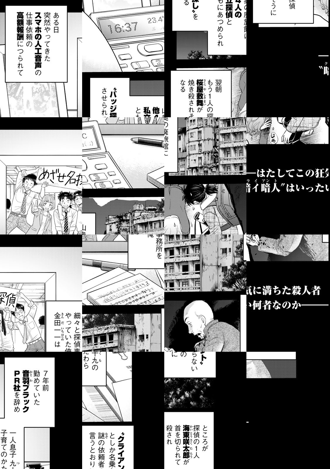 “あの天才高校生”が、“パパ”になった‼︎ サラリーマンとして働いていた金田一一は、幼なじみの美雪との間に生まれた子どもの育児に専念するべく、ついに探偵事務所を設立。その名も「金田一一探偵事務所」‼︎ 謎解きに、育児に大忙し! 原作・天樹征丸、漫画・さとうふみやの本家本元コンビが描く、新境地の金田一シリーズ‼︎