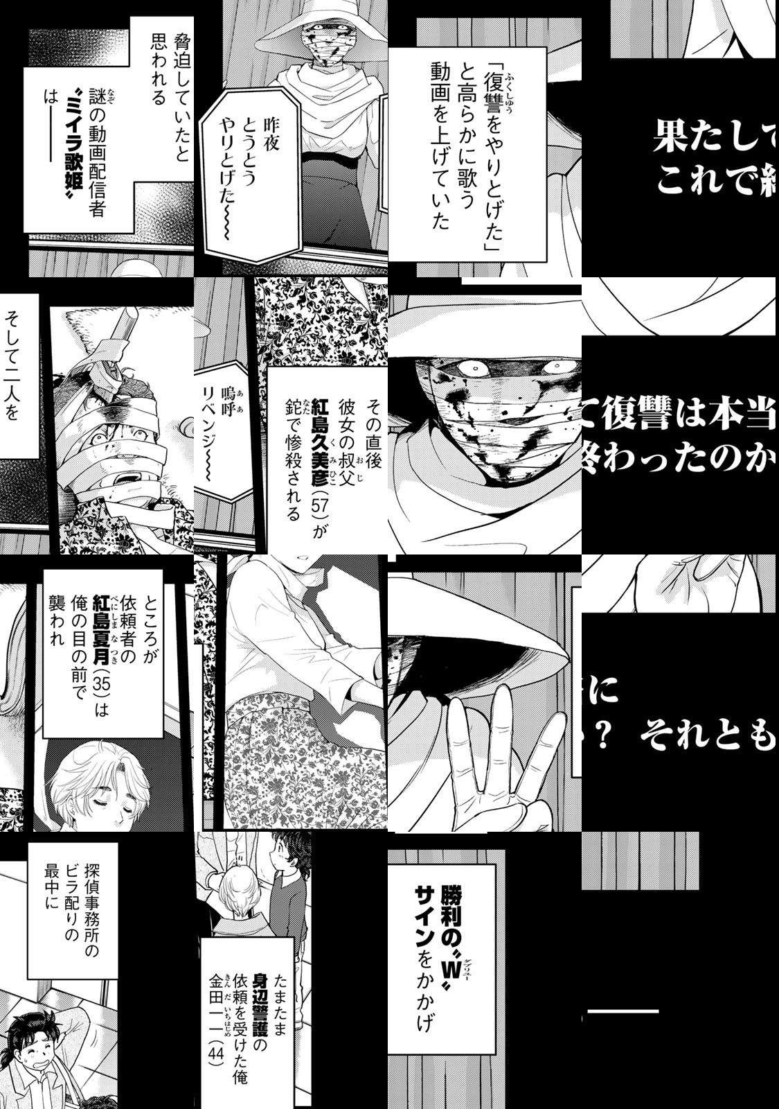 “あの天才高校生”が、“パパ”になった‼︎ サラリーマンとして働いていた金田一一は、幼なじみの美雪との間に生まれた子どもの育児に専念するべく、ついに探偵事務所を設立。その名も「金田一一探偵事務所」‼︎ 謎解きに、育児に大忙し! 原作・天樹征丸、漫画・さとうふみやの本家本元コンビが描く、新境地の金田一シリーズ‼︎
