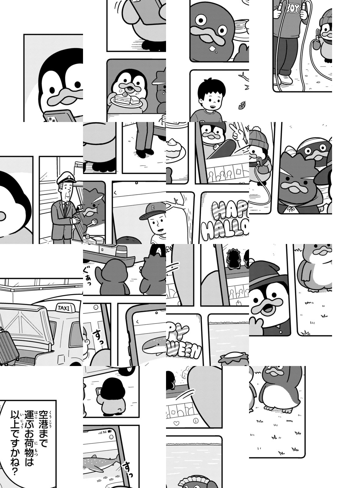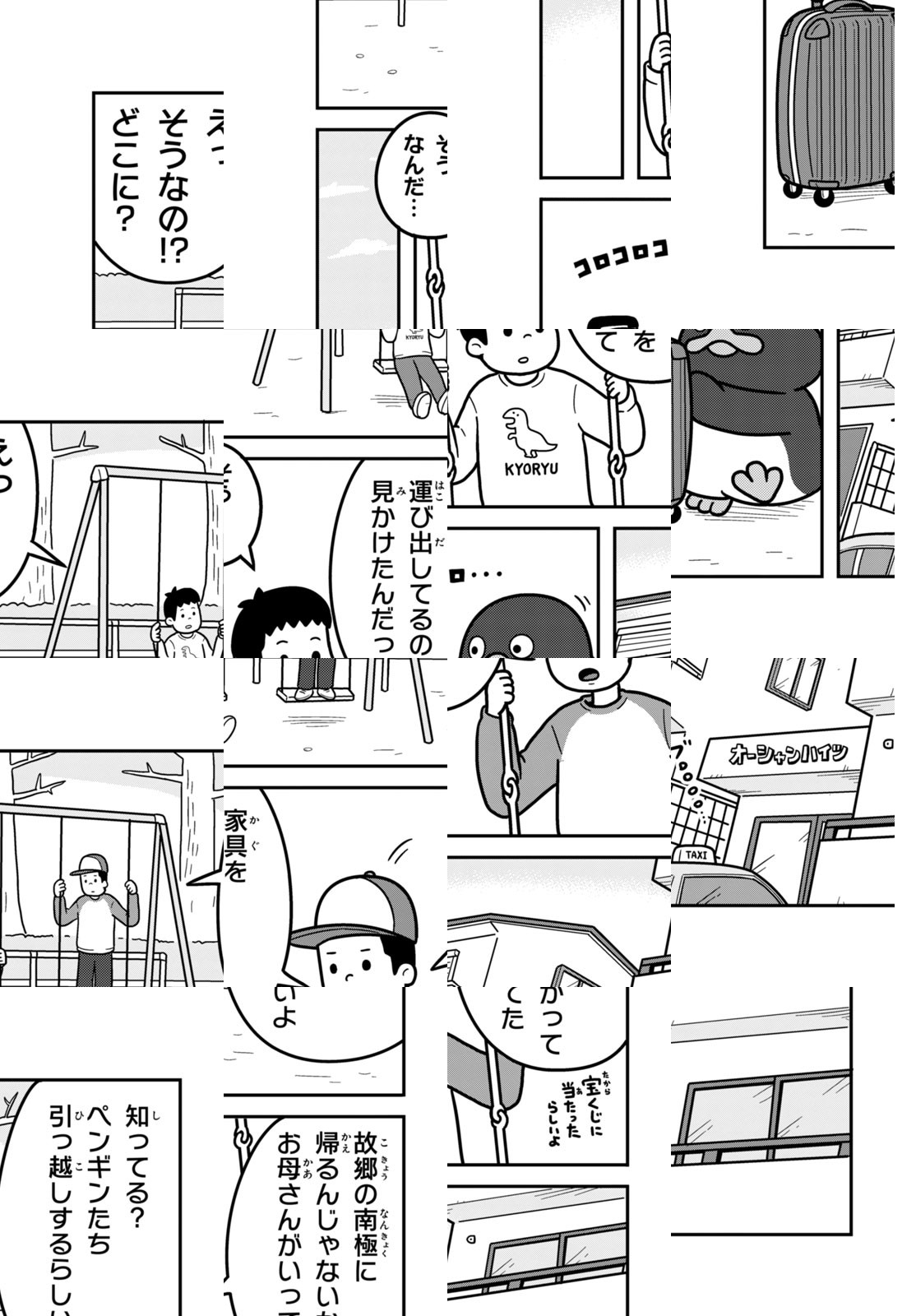 【泣き虫で甘えん坊なコウテイペンギン】【ドジでおバカなアデリーペンギン】【やんちゃでわんぱくなイワトビペンギン】にんげん社会に紛れ込んだ、3匹のペンギンたち。三輪車でフードデリバリーのアルバイトをしたり、カラオケでマイクを互いに譲り合ったり…。とことんマイペースに生きるペンギンたちと、彼らに振り回されるにんげんの、ゆるかわ漫画!!