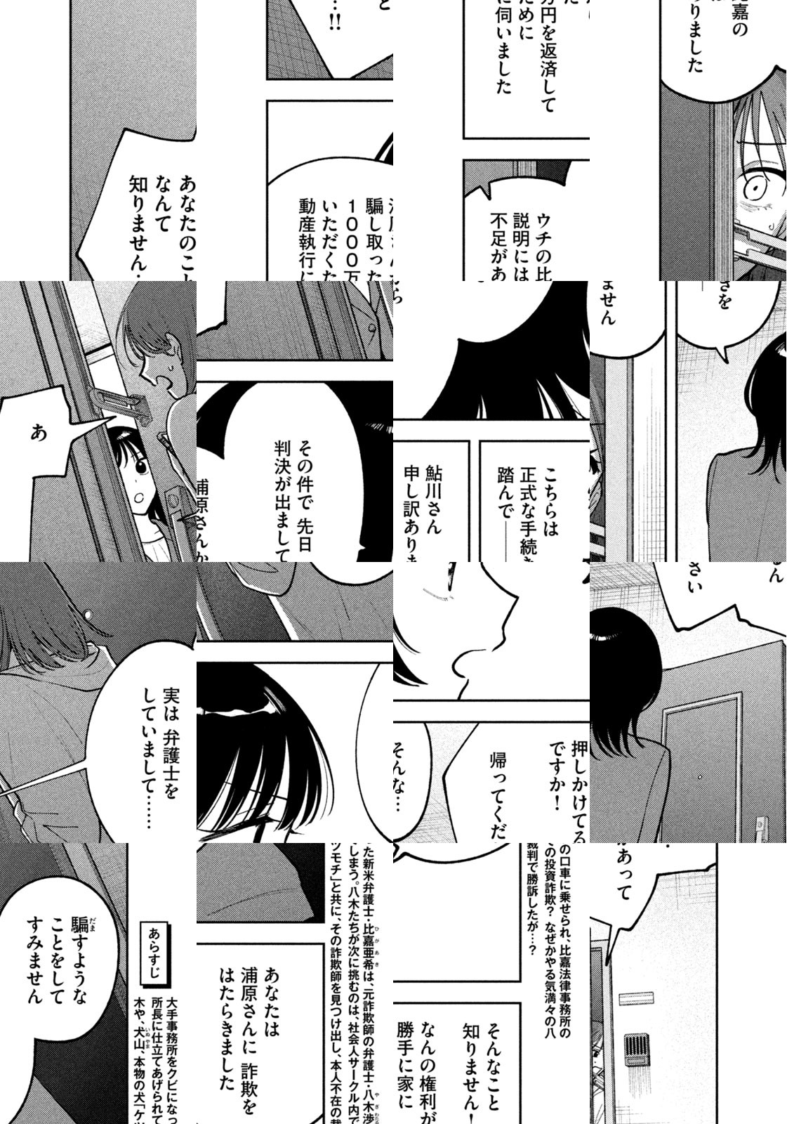 「正直者は騙されない、だから誰よりも正直でいろ」。弁護士だった今は亡き父の遺した言葉を胸に、比嘉亜希は大手事務所の新米弁護士としてバリバリ働く。初めて一人で任された案件は、巨大IT企業グループ「ネクストプリズム」が起こされた訴訟。入念に準備をして裁判に臨む亜希だったが、相手弁護士は元詐欺師であり、その上に前科まであるという八木渉だった。その八木は、古くから亜希のことを知っているようでーーー。人々を欺くリーガル・エンターテイメント開幕!!