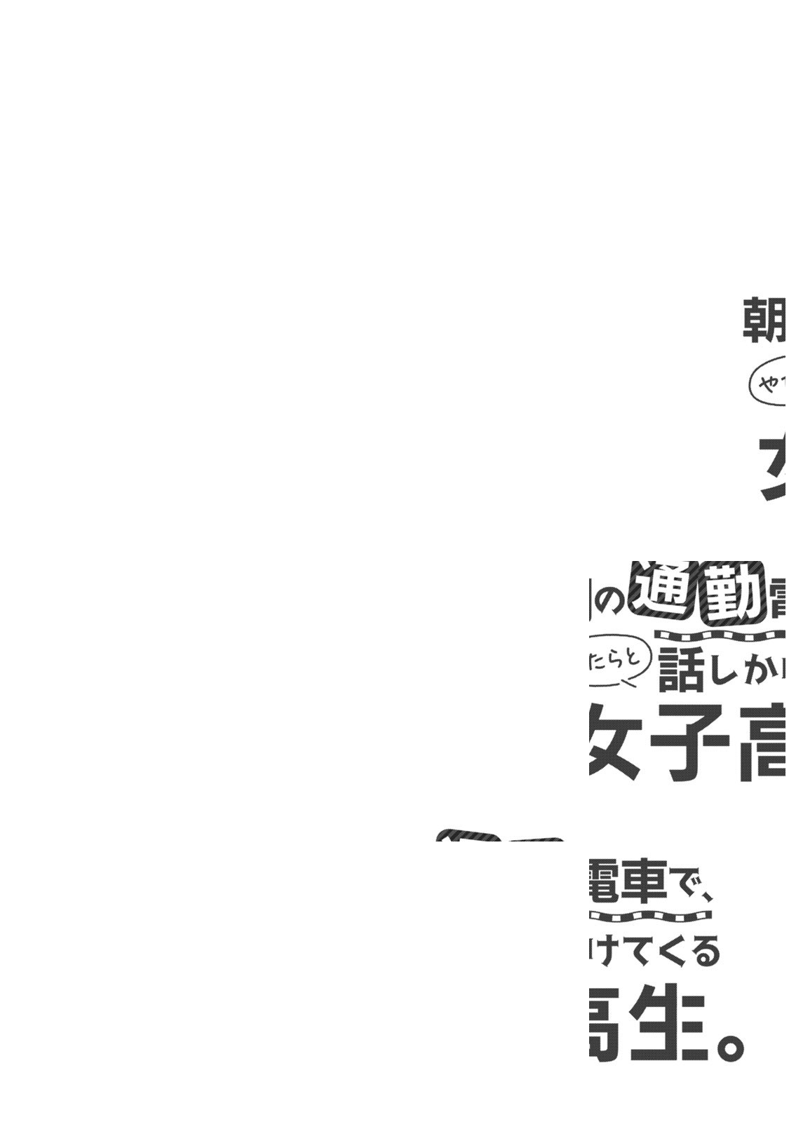「俺は彼女のことは何も知らない。一カ月前から通勤電車の間だけ話をするようになった。それだけの関係だーーー」。隣に座ったJKが、なぜか毎日話しかけてくる! 俺に興味があるのか?それとも、弄ばれているのか??通勤タイムがちょと楽しくなる。車内限定ギャルコメディ!