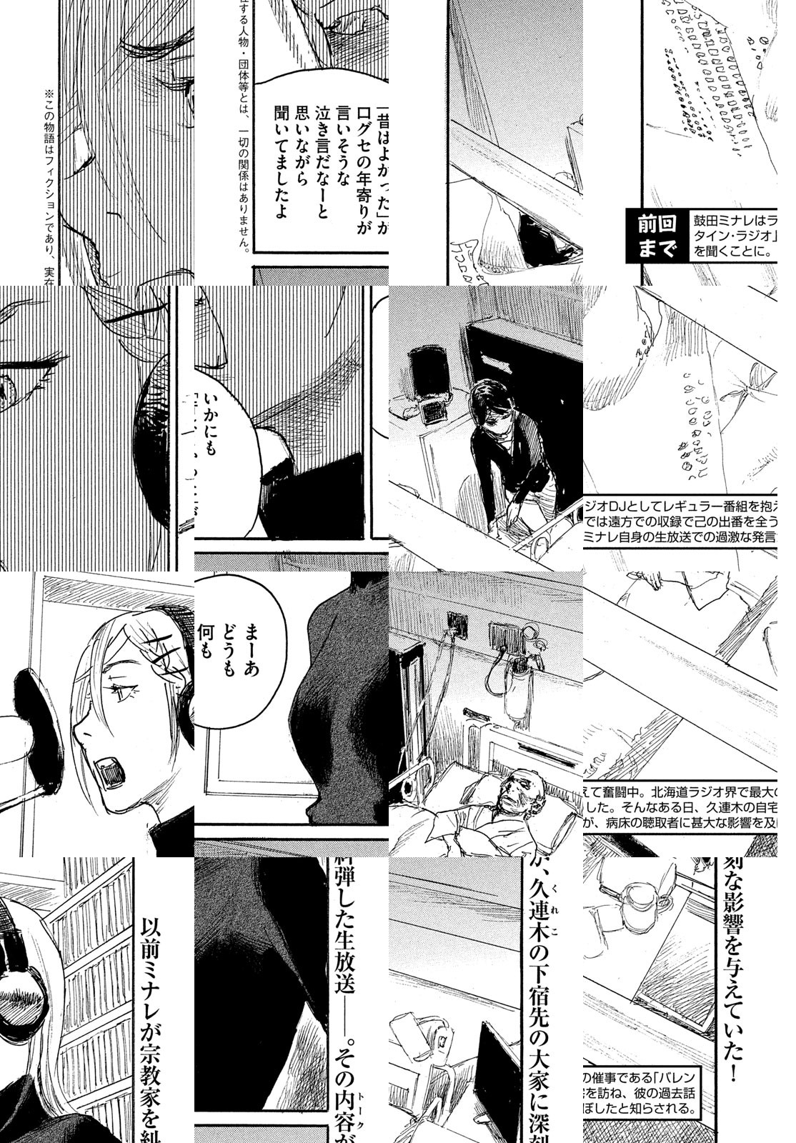 舞台は北海道サッポロ。主人公の鼓田ミナレは酒場で知り合ったラジオ局員にグチまじりに失恋トークを披露する。すると翌日、録音されていたトークがラジオの生放送で流されてしまった。激高したミナレはラジオ局に突撃するも、ディレクターの口車に乗せられアドリブで自身の恋愛観を叫ぶハメに。この縁でラジオ業界から勧誘されるミナレを中心に、個性あふれる面々の人生が激しく動き出す。まさに、波よ聞いてくれ、なのだ!