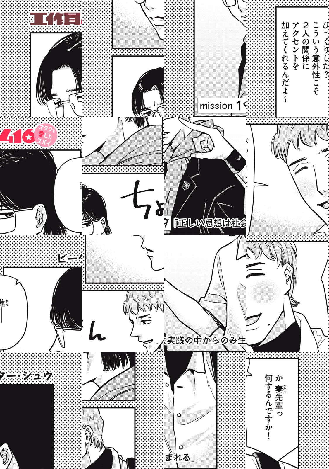 任務で日本へ潜入することになった某社会主義国の工作員416(通称:ヨン・イム)。彼が日本社会に馴染むために選んだのは資本主義の魔窟ともいえるコンビニだった。そこで出会ったのが、引きこもりのため人との距離感がちょっとおかしいオタクの森山のぞみ。スパイとオタク、対人距離感がお互いにバグっている二人の不器用ラブコメ