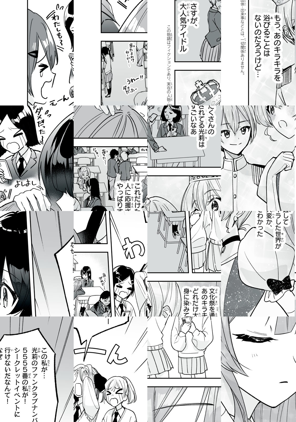 三百六十度、どこから見ても平凡女子中学生の「日向」は、人気アイドル「光莉」の、双子の妹!光莉のファンをがっかりさせないため、日向はずっと、姉のことを秘密にし、目立たないようにふるまってきた。ある日、光莉のピンチを救うため、光莉と入れ替わったことで、日向はキラキラした世界に飛びこむことにーー!! 青い鳥文庫の大人気作がコミカライズ!!