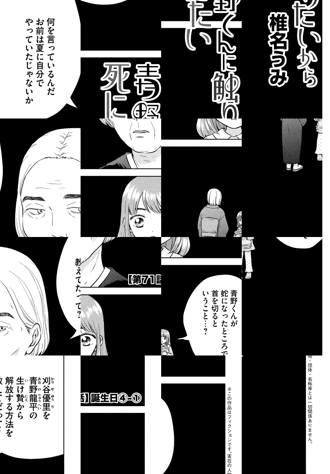 君に触れるなら、死んでもいいよ。これがわたしの愛なんだ。アフタヌーン公式サイト「モアイ」掲載の1話が300000PV突破で話題! 天然少女・優里ちゃんと、その彼氏・青野くん。ごく普通のお付き合いをしていたふたりだが、ある日突然、青野くんが「いなくなって」しまう……。絶対に結ばれないし、触れ合えないふたりの、でたらめで切実すぎるラブ・ストーリー。