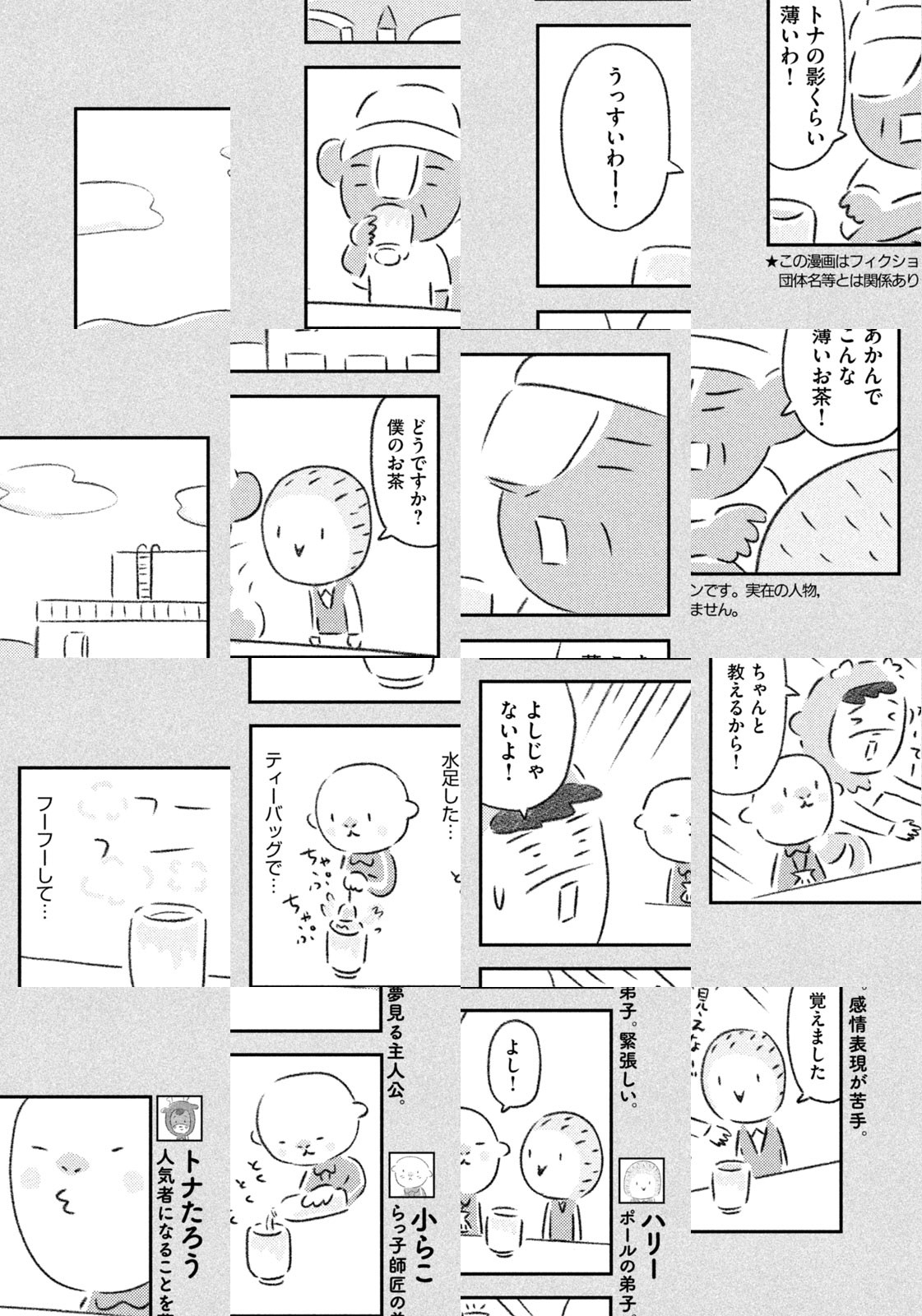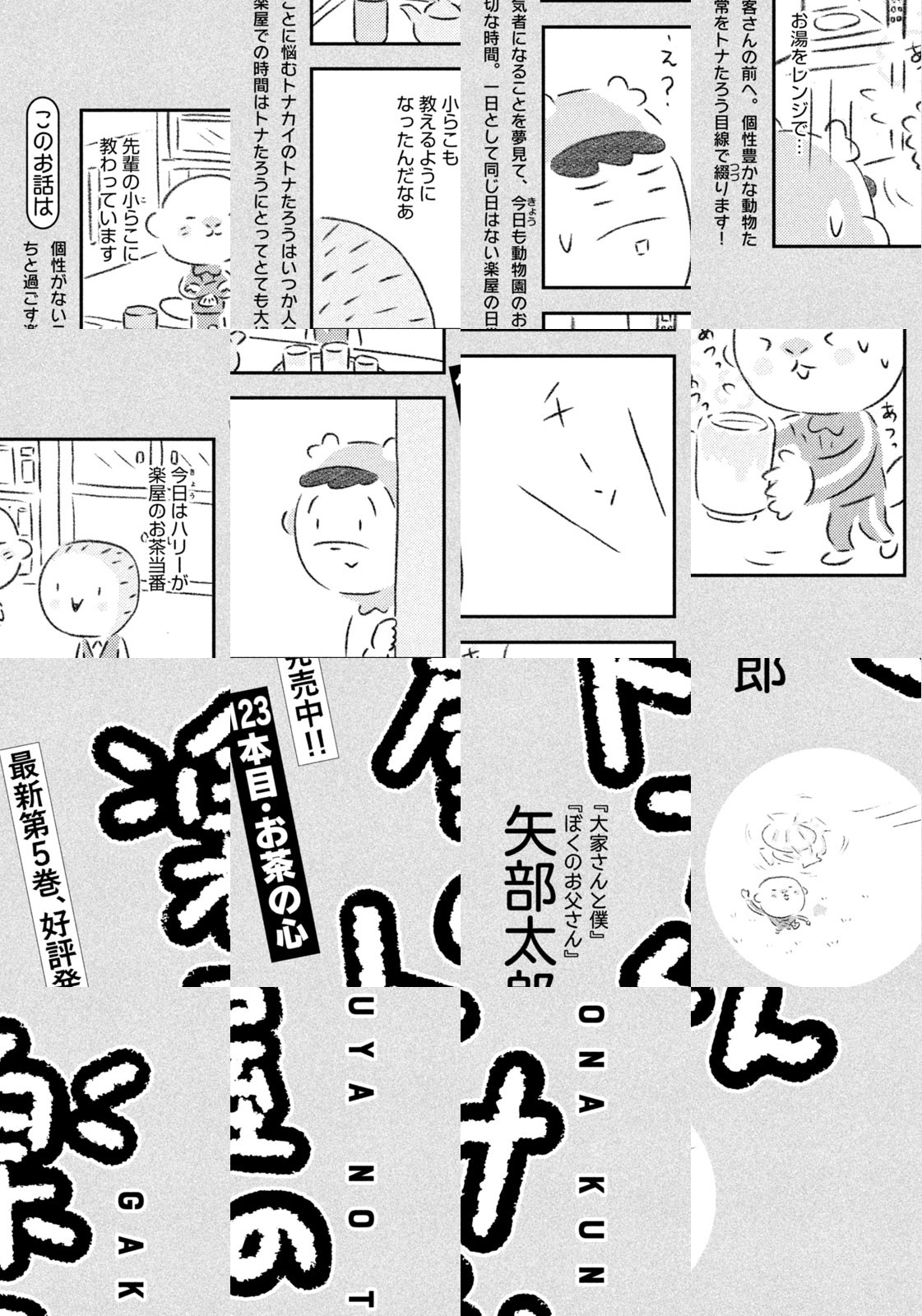 先輩にはいびられ、後輩には舐められ、お客さんには気づかれない主人公・トナカイのトナたろう、ちょっとガサツでデリカシーのないスカンクのポール先輩、元気すぎるお猿のアーコ、大人気のパンダくんなど、どこか見たことあるような動物たちの楽屋での悲喜こもごもなアニマル賛歌。自分の才能や“動物関係”に今日も悩みながら切磋琢磨する動物たちの舞台裏を覗いてみませんか?